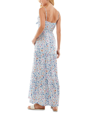 Kingston Junior's Floral Tie Front Tiered Maxi Dress Blue Size Medium
