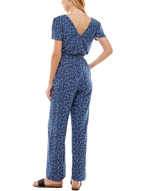 Kingston Junior's Floral Print Tie Waist Jumpsuit Blue Size Small