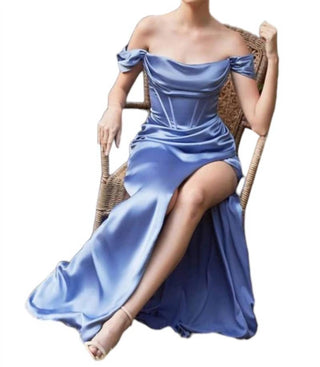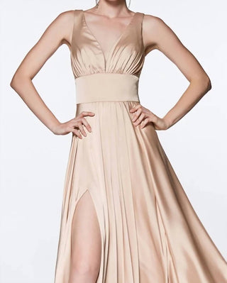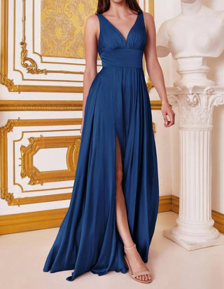 Ladivine - Long Satin A-line Dress With Slit