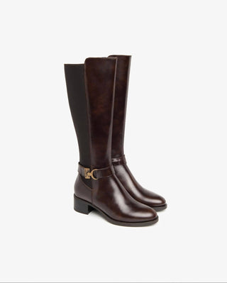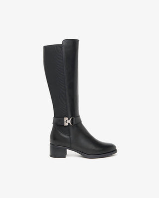 Nerogiardini - Women's Leather Stretch Buckle Knee Boots