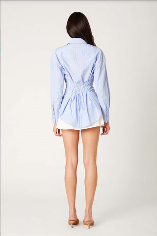 Nia - Celia Plunge V Neck Linen Scalloped Trim Top