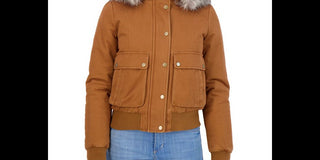 Sebby Junior's Faux Trim Hooded Bomber Jacket Brown Size Small