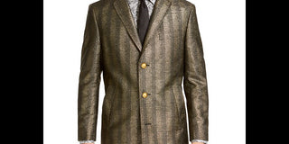 Tallia Men's Slim Fit Cream Metallic Plaid Evening Jacket Gray Size 38