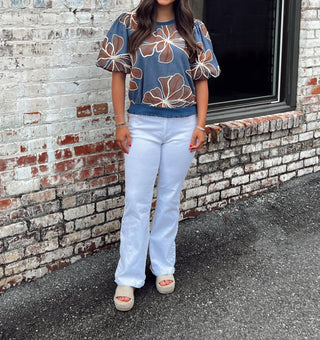 Voy - Fae Contrast Band Detailed Floral Embroidery Top