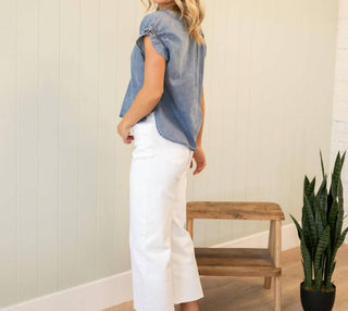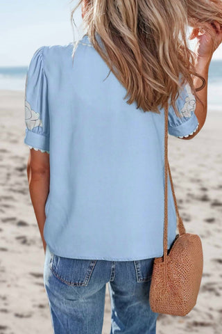 Aapparella - Lace Crochet Textured Button Back V-neck T Shirt