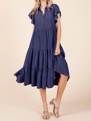 Mittoshop - Ruffle Mock Neck Hi Low Maxi Dress