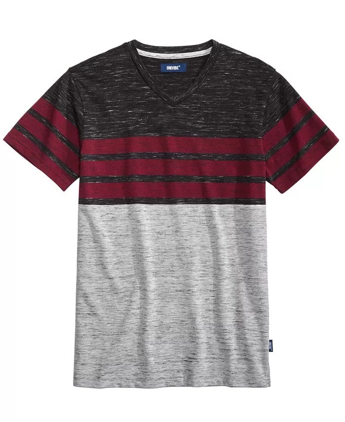 Univibe Big Boys Valle Colorblocked Stripe V-Neck T-Shirt Black Size Large