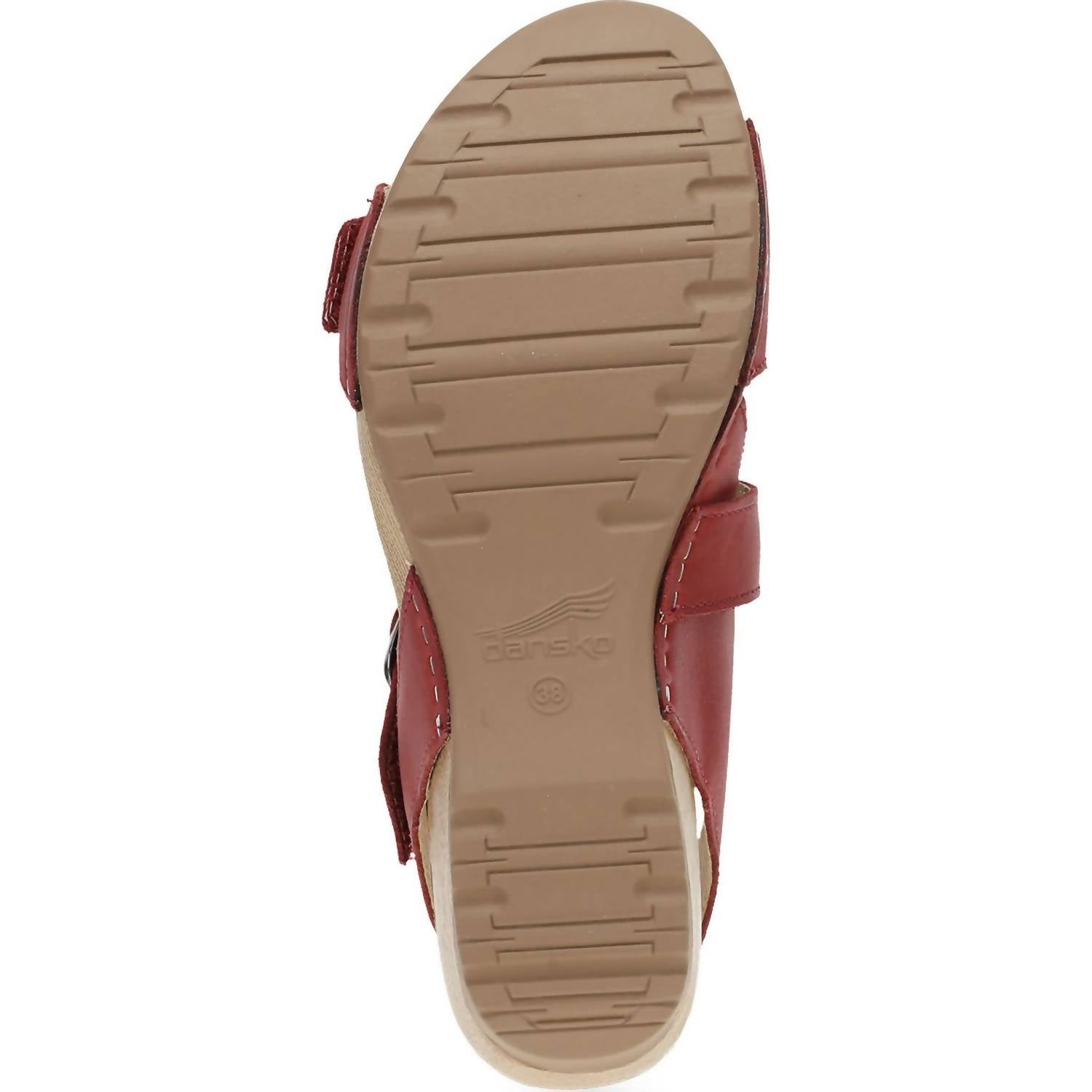 Step up your style game with the Women's Trinity Cayenne Burnished Nubuck Wedge by Dansko, perfect for your workwear and holiday occasions. With burnished leather uppers, these sandals feature a suede socklining for a plush underfoot feel and a contoured PU midsole designed for comfort. The heel height of 2.25 inches gives you a lift without compromising ease, and the hook & loop closure allows for a customized fit. Whether for a summer outing or a 4th of July celebration, these wedges deliver breathable support and long-lasting wear.