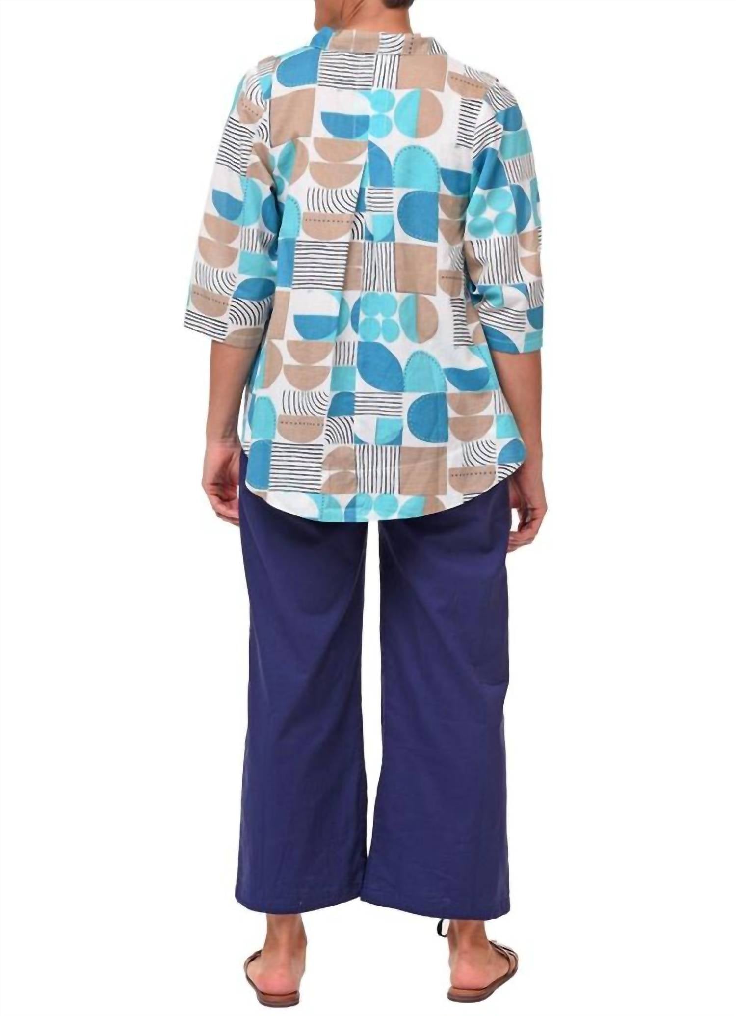 Elevate your wardrobe with the Grayson Blouse by Tulip Clothing, showcasing a three-quarter sleeve cut in a vibrant Geo Candy geometric pattern for a streetwear-inspired look. Crafted from 100% cotton for comfort, this blouse features a chic high-low hem with a front length starting at 28.5 inches for size XS. This women’s blouse offers a button closure for easy wear. Care is simple with machine wash and line dry instructions.