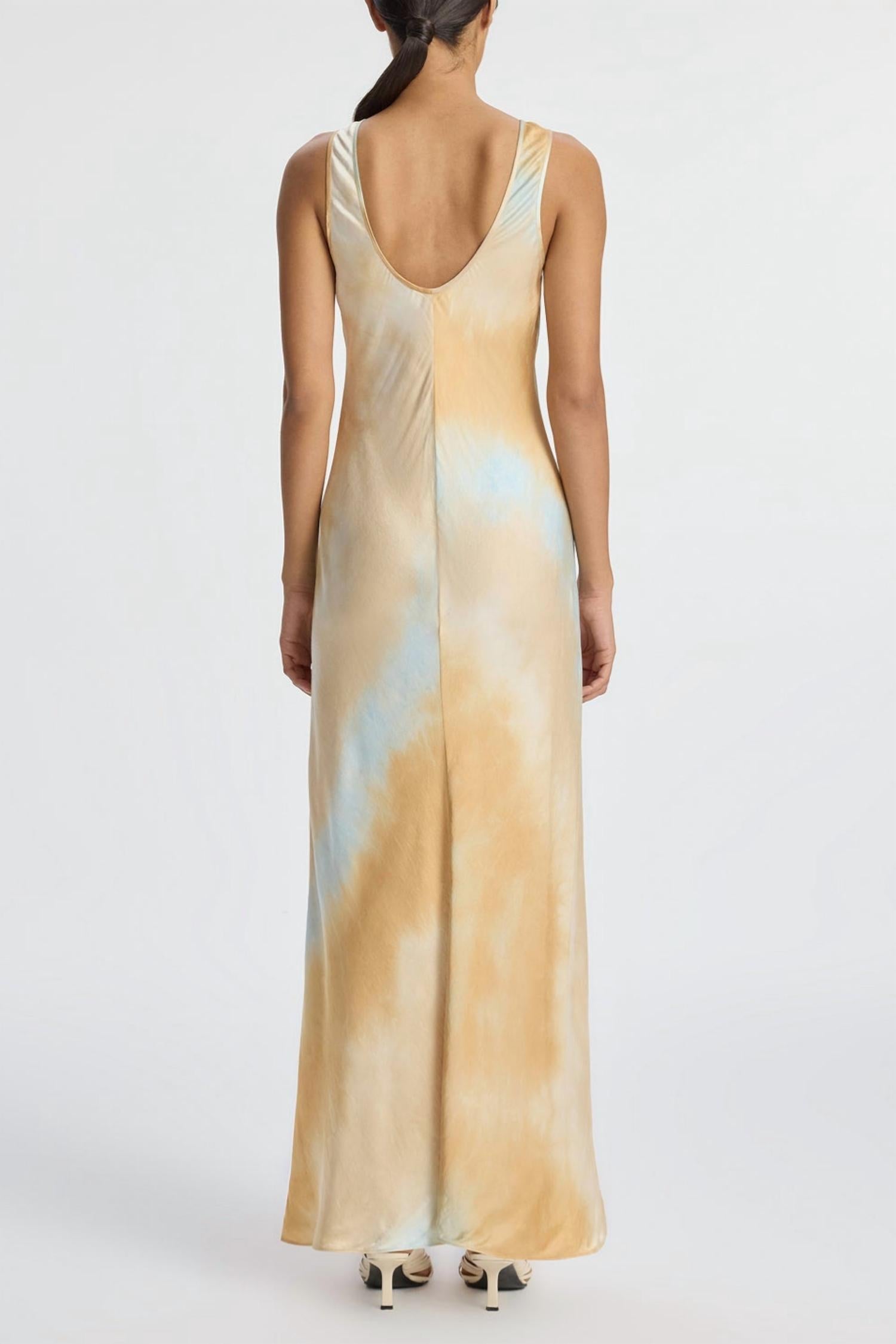 Introducing the A.L.C. Women's Amana Dress, a captivating ensemble for elegant vacation occasions. This maxi dress boasts a sleeveless maxi silhouette in a gradient of sky-blue and sandy-beige with a minimal round neckline and wide straps, gracefully leading to a low, curved back. Crafted from 100% viscose for a smooth feel, it features a convenient pull-on closure. Care for this statement piece by dry cleaning only.