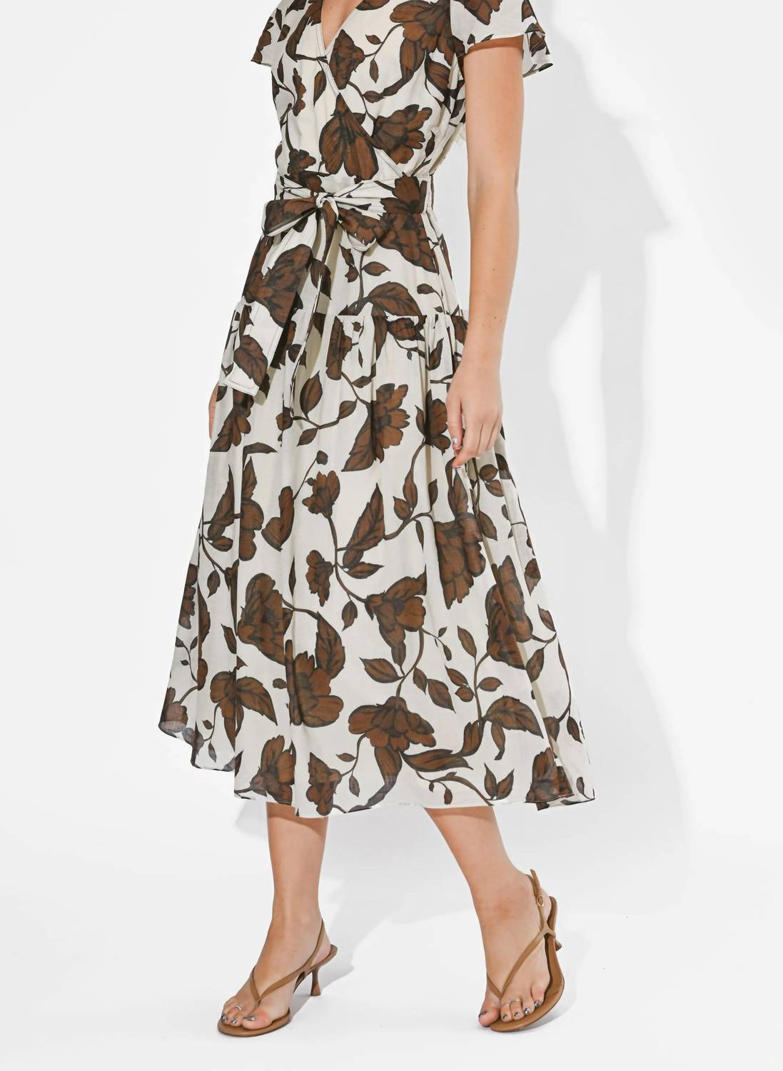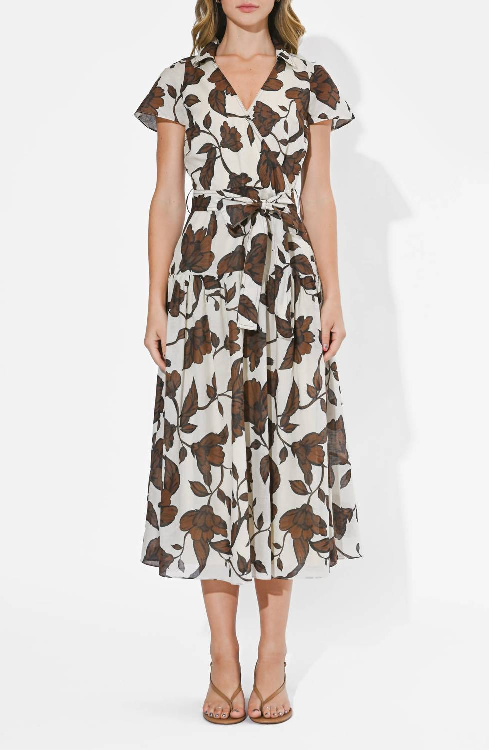 Introducing the Taylor Dress by Adelyn Rae, a stunning wrap-style piece that exudes effortless elegance. Crafted with short capelet sleeves, this midi-length dress features a flattering A-line silhouette that cinches at the waist for a polished look. Made from 100% cotton, it includes a hidden back-zip closure for ease and offers the versatility of dry cleaning. Perfectly suited for various occasions, the dress boasts a flowy, floral pattern that captures your unique style.
