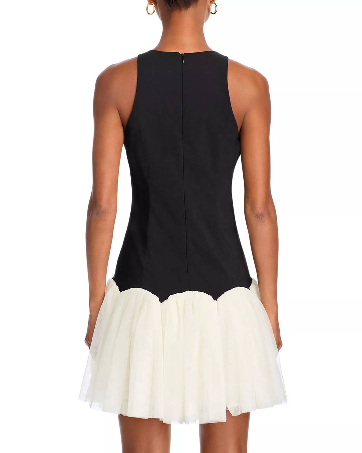 Elevate your evening wardrobe with the Nohemi Mini Dress by Steve Madden, a stunning choice in Black Multi. This sleeveless mini dress features a sculpted black bodice paired with a scalloped ivory skirt, creating a chic A-line silhouette. Crafted from 79% Rayon, 18% Nylon, and 3% Spandex for a comfortable fit, it offers a convenient zip closure. Care: Hand wash cold. Perfect for spring occasions like Easter, embodying the trend of quiet luxury.