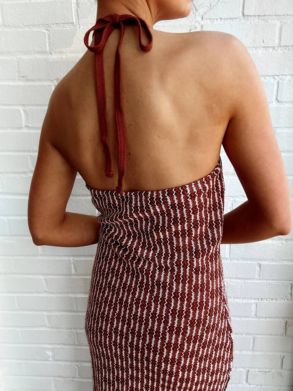 A midi dress so versatile, your options for wearing it are endless. Elevate your wardrobe with the STEVE MADDEN Tatum Halter Midi Dress, a chic and flattering sheath silhouette for any summer occasion. This sleeveless dress in a henna stripe design features a halter neckline and tie closure for an elegant touch, complemented by its soft knit texture. Crafted from 96% Polyester and 4% Spandex shell with a 100% Polyester lining, it ensures both comfort and style. Care is easy with machine wash and tumble dry instructions, making it a practical yet stylish choice for a dinner party or summer gathering.
