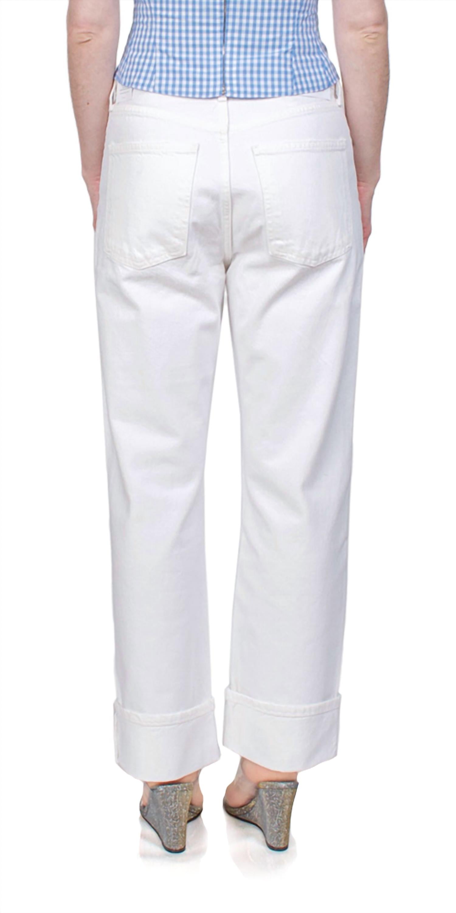 Experience a relaxed fit with the AGOLDE Fran Low Slung Straight Jean in the charming Milkshake shade. Crafted from 100% organic cotton, these jeans promise enhanced comfort over time. Designed for an effortless style, they feature a low-rise waist with a zip closure and a straight leg, perfect for a flattering fit. With dimensions of a 12 1/4" rise, a 26 1/2" inseam, and a 17 1/4" leg opening, they are ideal for any casual or stylish outing this spring. Model is 5'5" and wears a size 25.
