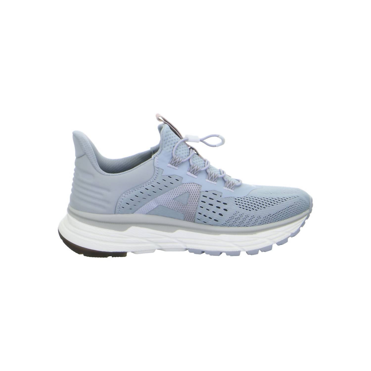 The Women's Terra 1 Sneaker by Allrounder is your perfect companion for fitness workouts or athleisure wear. Designed with a light grey "Highrise" textile mesh upper, this sneaker features an all-around padded collar for comfort and a sporty design that is ideal for everyday use, leisure, and light hiking. Its dynamic, grippy, and flexible rubber outsole comes with a shock absorber to reduce impact and provide excellent cushioning, while traditional lacing ensures a secure fit. These medium-width sneakers with a round toe are lightweight, versatile, and ready to tackle various terrains.