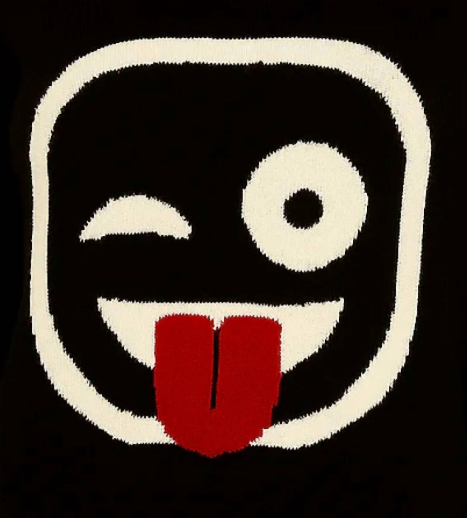 A long sleeve top you can wear with denim, skirts, well... just about anything! Introducing the Wink & Tongue Emoji Top by Angel Apparel, a playful addition to your fall wardrobe. This sweater features long sleeves and a relaxed fit, hitting at the top of the thigh with a whimsical emoji design to brighten your style. Crafted from a cotton blend of 55% Cotton and 45% Acrylic, it offers both durability and comfort. Originating from an imported source, it features a convenient pullover styling and requires delicate hand washing or dry cleaning.