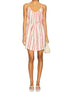 Introducing the Scoop Neck Cami Mini Dress by bobi, featuring a vibrant multi-stripe pattern perfect for summer occasions. This sleeveless dress is crafted from 100% cotton, offering a comfortable and breathable fit. Designed with a shift silhouette, it includes adjustable shoulder straps and a tonal tie-up at the waist for a customizable style. Made in India with a pull-on closure, this dress is unlined and includes side slit linen pockets, care for it by hand washing.