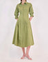 Introducing the Jazz Pintuck Midi Dress by SIMKHAI, a sophisticated olive piece perfect for your spring wardrobe. This crisp cotton blend dress, featuring three-quarter sleeves and a structured collar, showcases a flowing A-line silhouette and a defined waist that flatters any figure. Composed of 63% Cotton and 37% Polyester, it includes a 100% Cotton lining for added comfort. Closure: Button front closure. Care: Dry clean only.