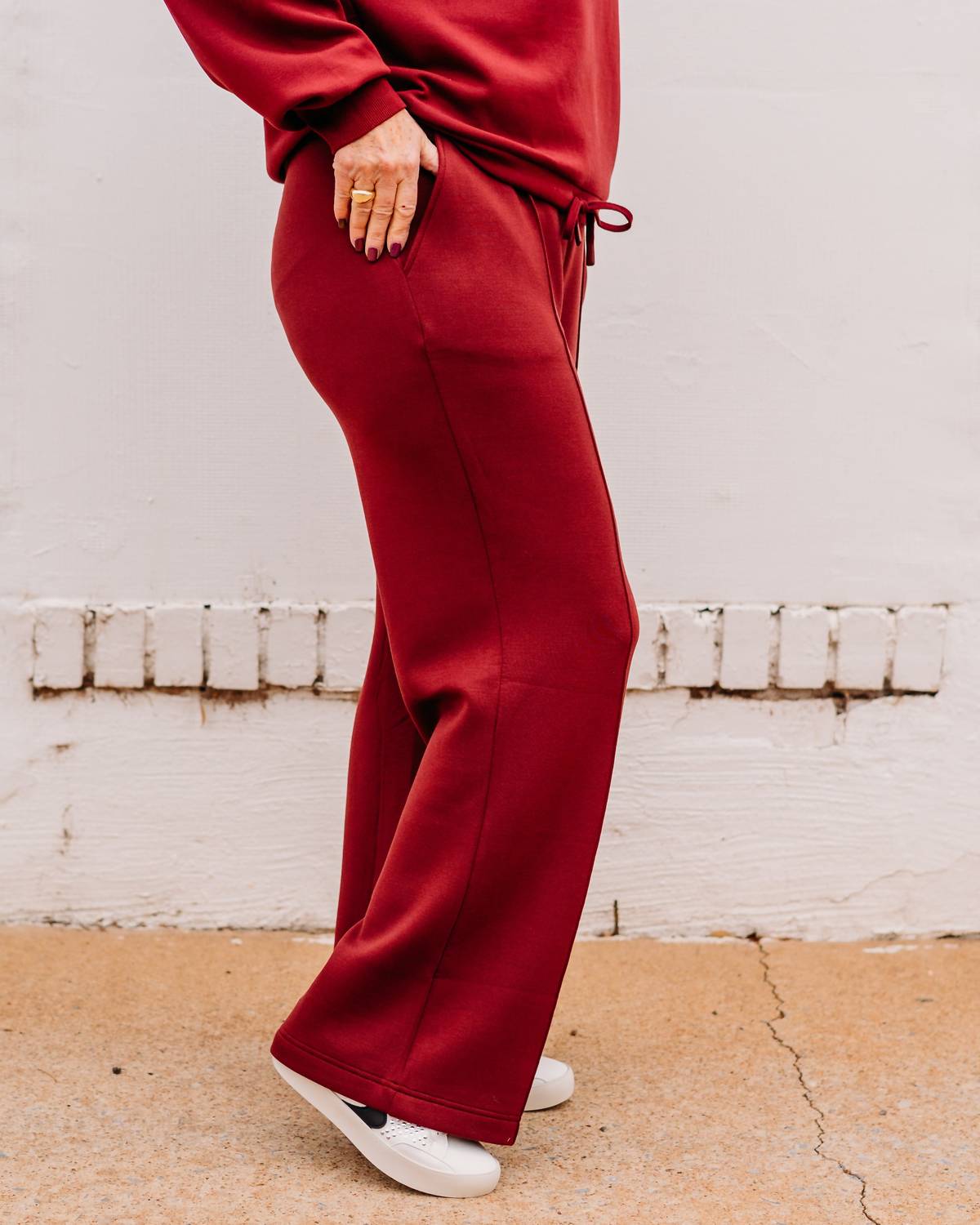 Introducing the Wide Leg Pants by Varley, a piece that embodies effortless sophistication with its relaxed silhouette and solid red hue. These wide-leg, high-rise pants feature a pull-on closure and a 30-inch inseam, perfect for a polished, contemporary look whether paired with sneakers or heels. With a regular fit and pockets for convenience, they're crafted for activewear, effortlessly transitioning from weekend errands to casual, elevated moments. Country of origin and specific care instructions are not provided.