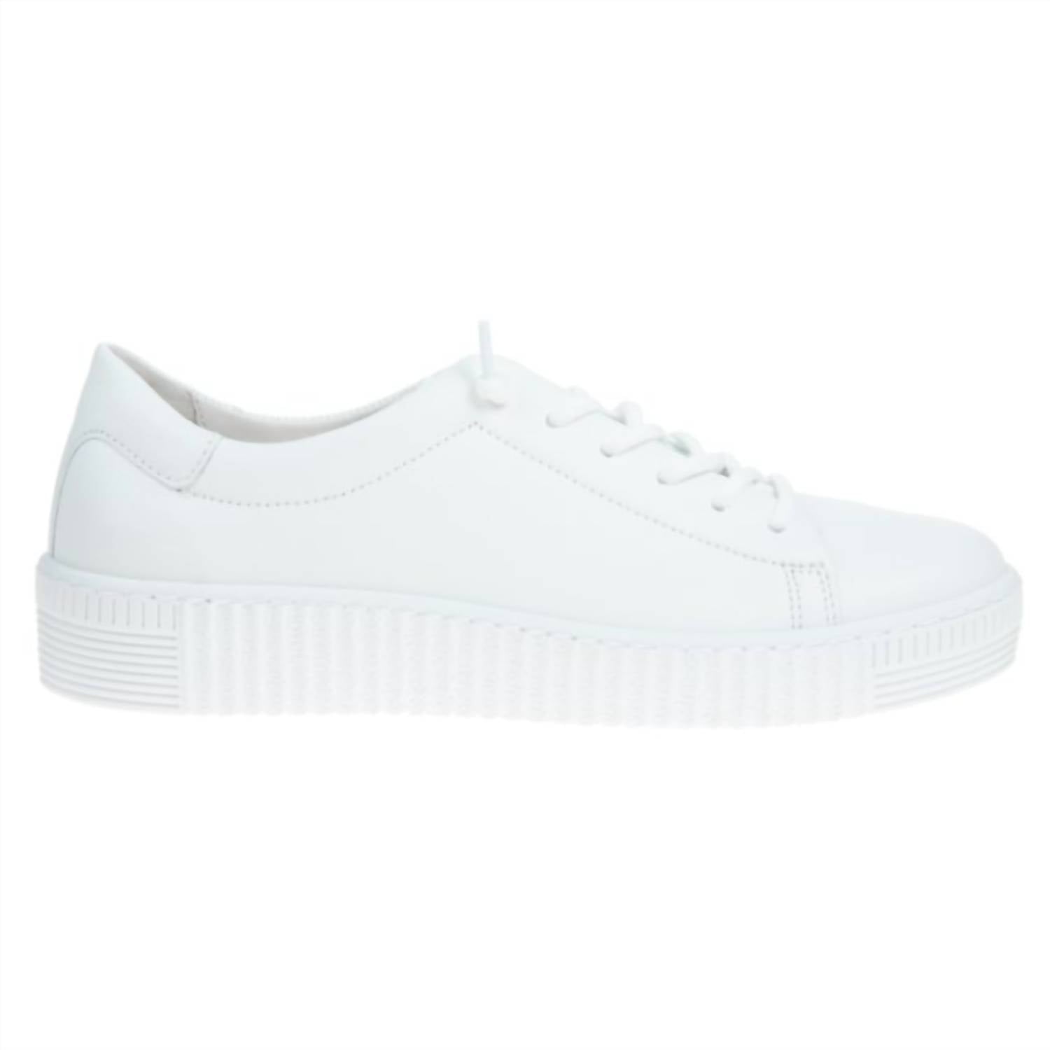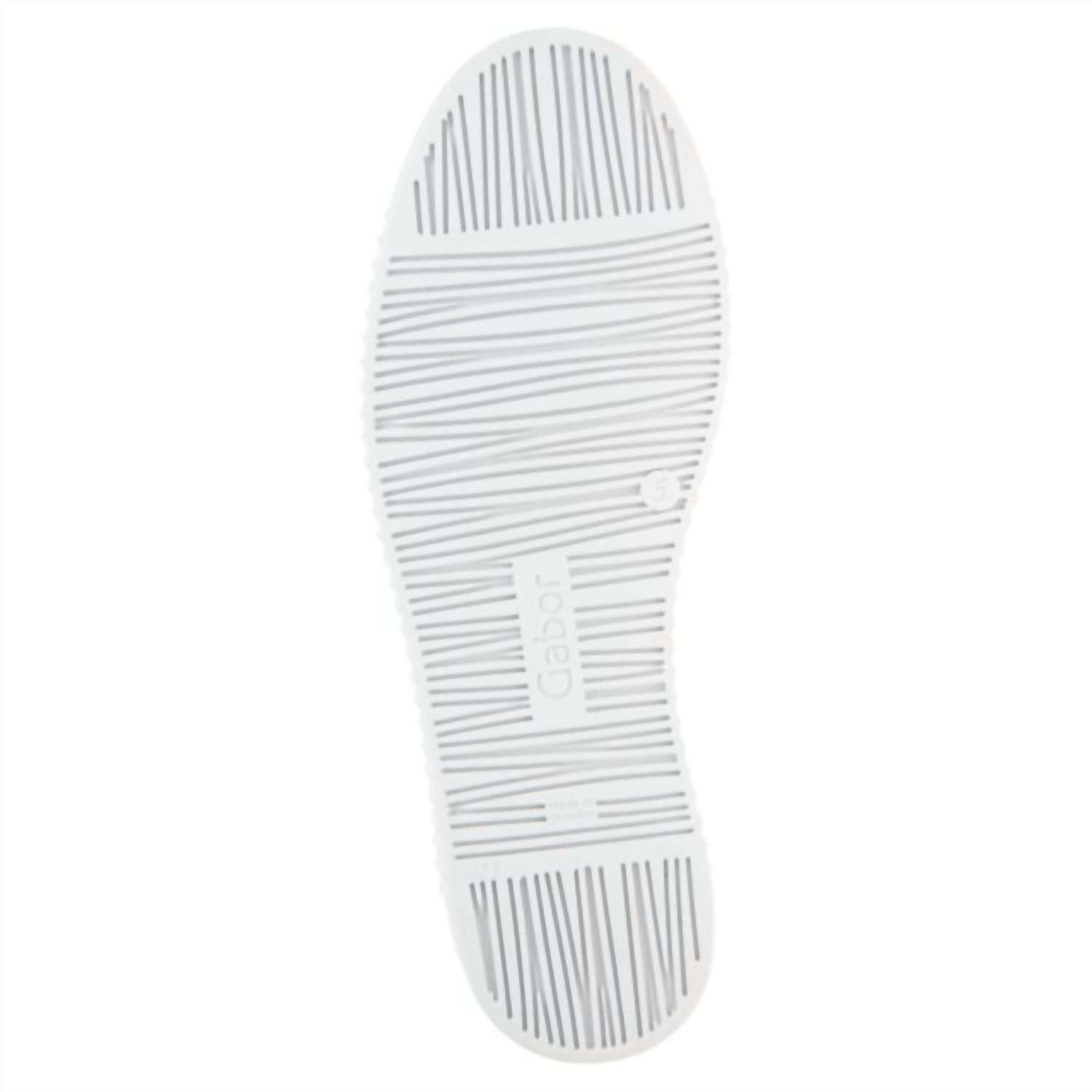 Get your daily steps in with these adorable sneakers. Discover the Women's Sneaker by Gabor, a sophisticated streetwear staple in timeless white leather for your summer wardrobe. Designed with a flat heel height of 1" and under, these round-toe slip-ons offer a sleek, comfortable fit for casual back-to-school days. The removable insole with arch support caters to medium to wide fits, ensuring each step is a pleasure. Elevate your look with Gabor's perfect balance of style and comfort, ideal for adding a chic touch to any outfit.