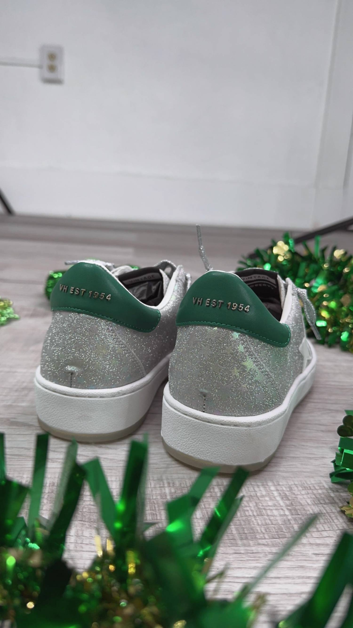 When fashion and function come together seamlessly. Step into game day style with the Women's Denisse Sneaker by Vintage Havana, featuring a captivating Silver/Stars colorway. These sneakers sport a chic green heel detail and eye-catching silver stars, embodying an effortless blend of comfort and flair. The round toe and wedge heel make them suitable for any evening event, especially during the spring season.