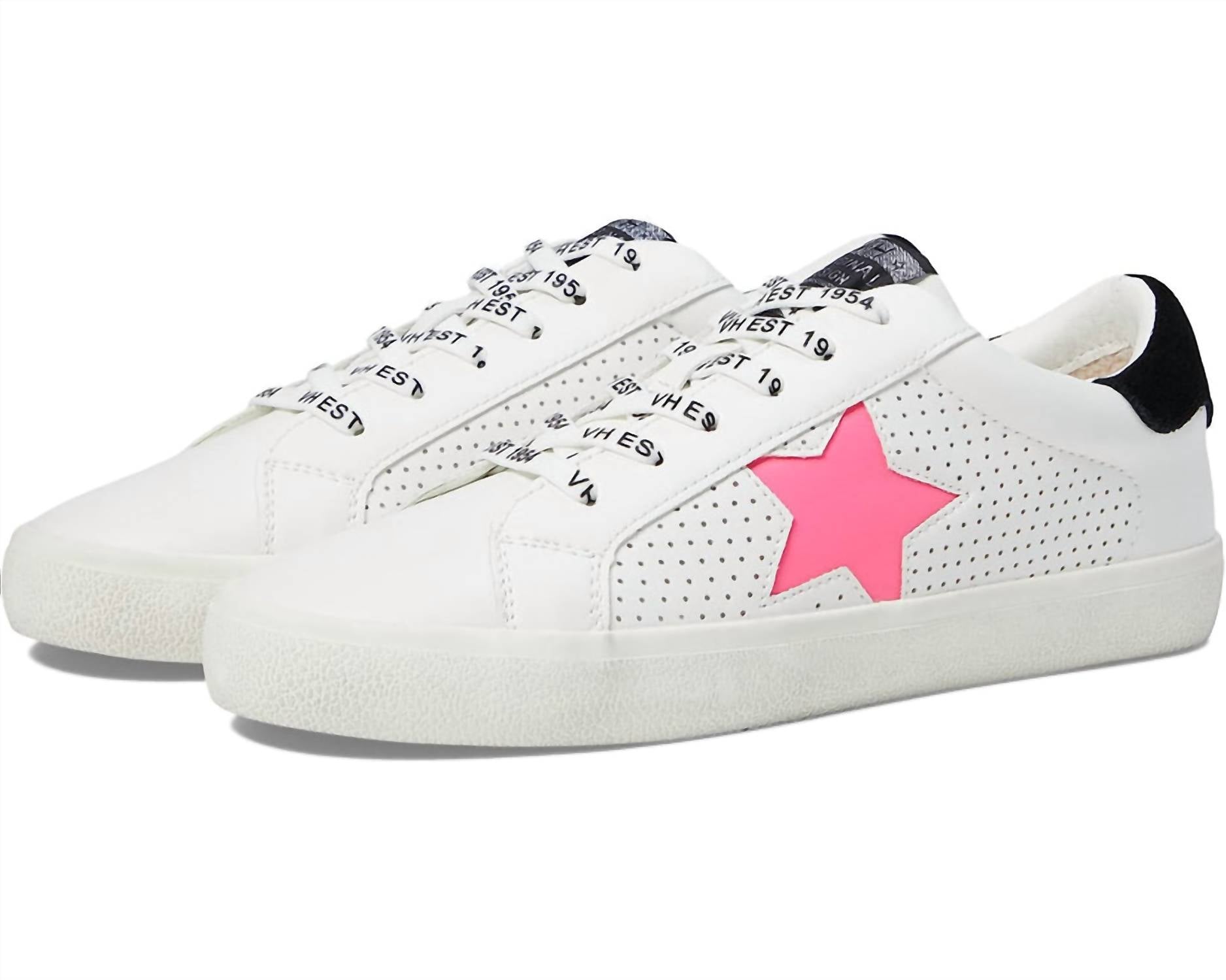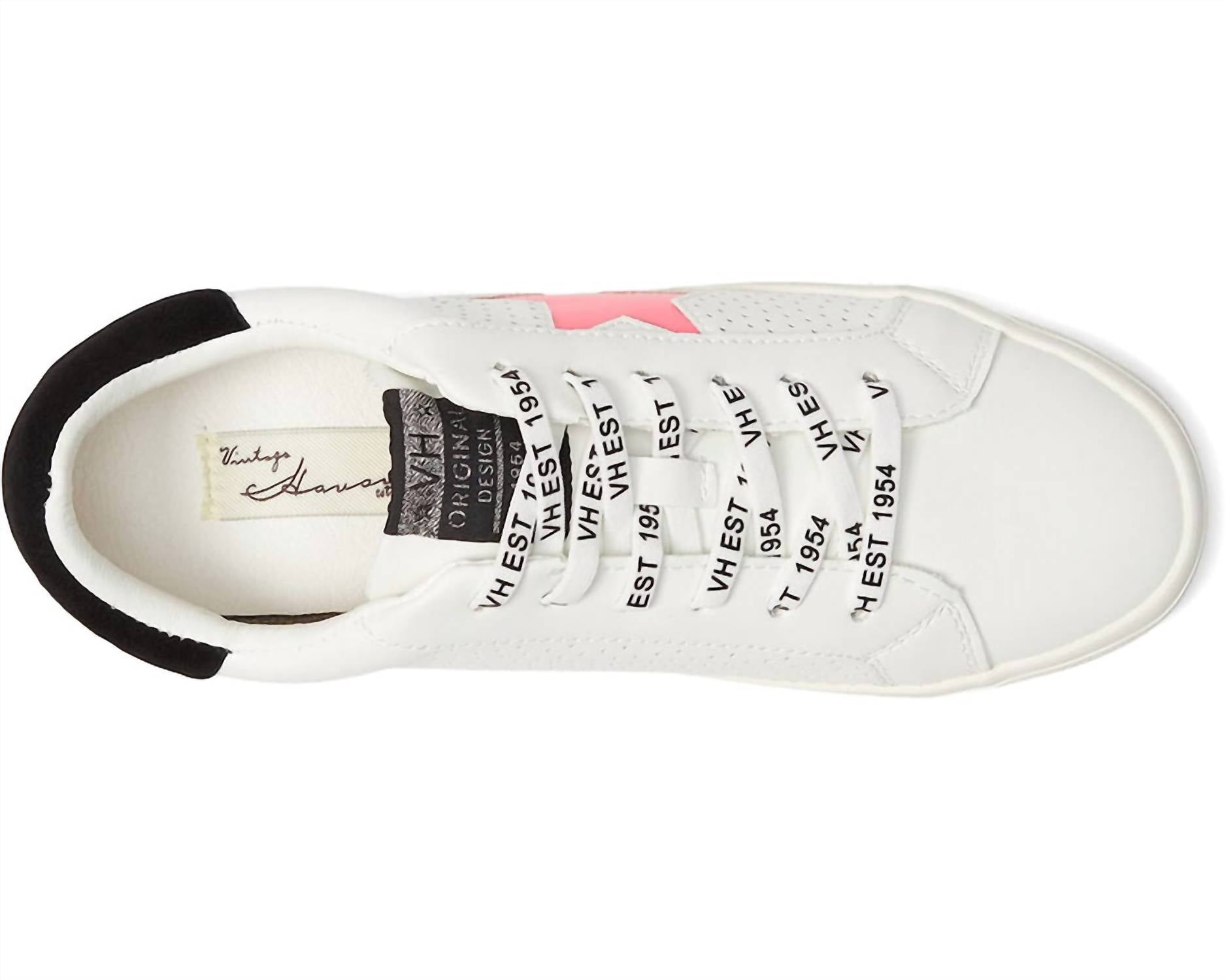 Get your daily steps in with these adorable sneakers. Step into style with the Women's Gadol Pop Sneakers by Vintage Havana, an on-trend choice in a chic white, pink, and black palette. These sneakers effortlessly combine a synthetic and leather upper with a distressed, slightly dirty outsole for a worn-in look. Designed with a round toe shape, they fit true to size, ensuring comfort and style with every step. Enjoy the perfect blend of fashion and function with these standout sneakers.