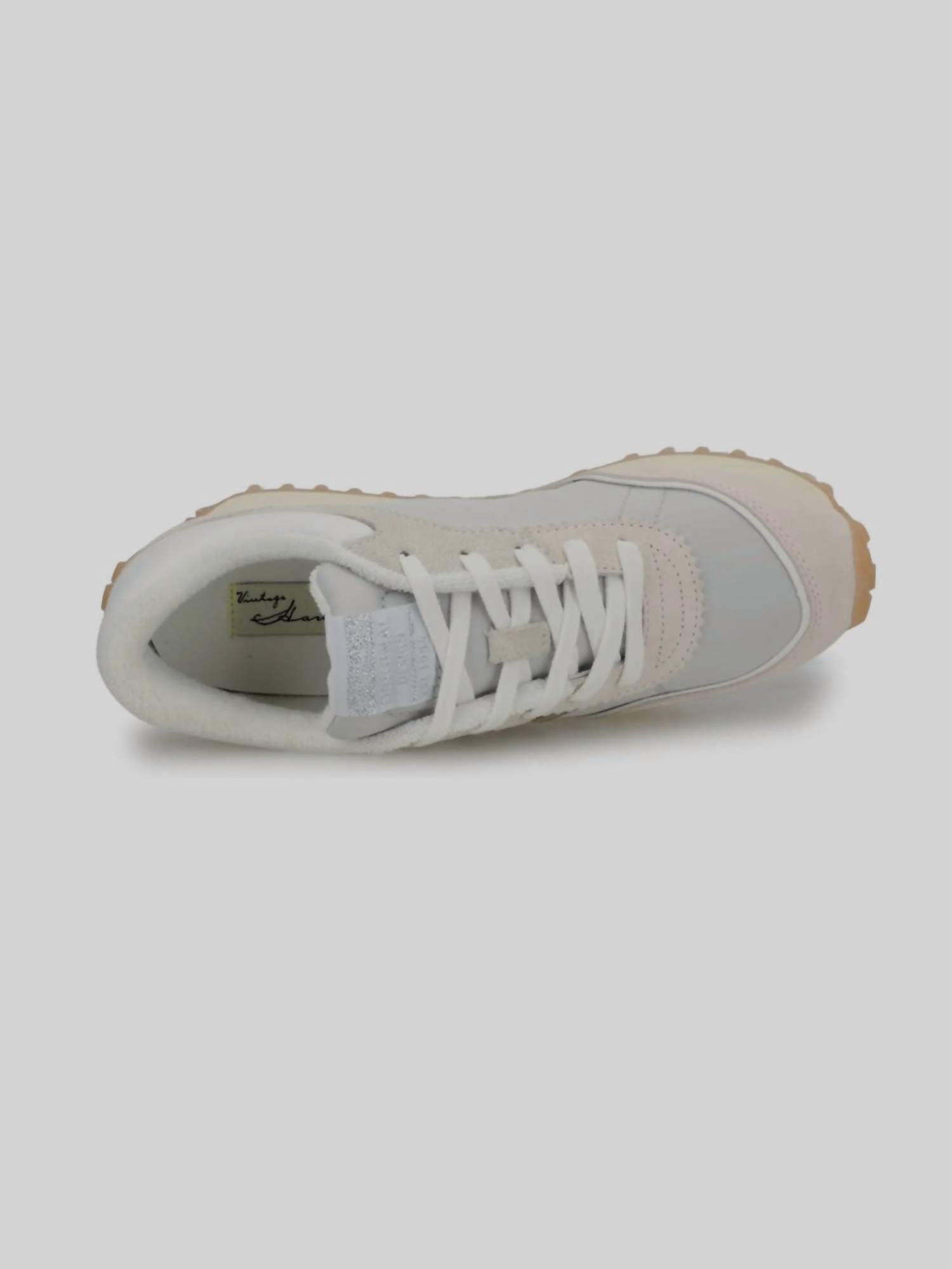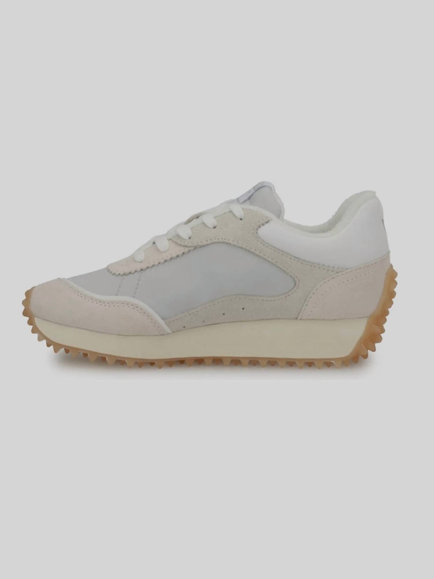 Discover the Women's She's A Ten Tennis Shoe by Vintage Havana, perfect for a stylish autumn outing. Crafted from durable leather, these low-top sneakers feature a cushioned rubber insole for optimal comfort. This white pebble sneaker is unlined with a lace-up closure, arriving with two sets of laces for versatility. The design showcases a round toe and a subtly shimmering mid-band that adds a hint of glamour.