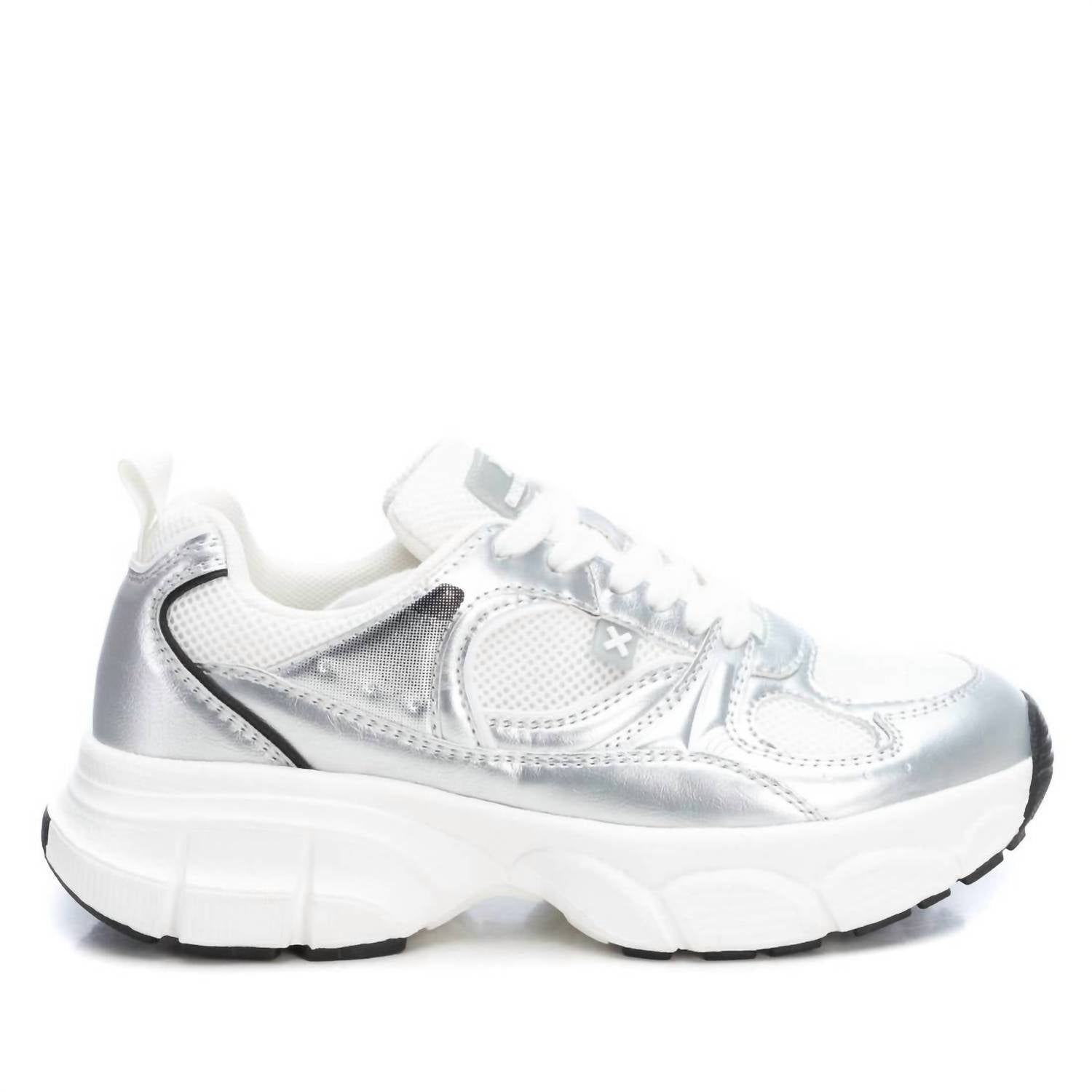 Cute, functional, and comfortable. These sneakers check all the boxes. Meet the Women's 143260 Round Toe Sneakers by Xti, your perfect athleisure companion for any fitness or workout session. These sneakers, crafted from premium leather in a striking silver hue, offer a blend of style and comfort for casual outings or special occasions. Featuring a medium shoe width and a sleek flat heel under 1 inch, these round toe sneakers ensure both support and elegance. Step into the season with confidence and make these Xti women's sneakers a staple in your summer wardrobe.