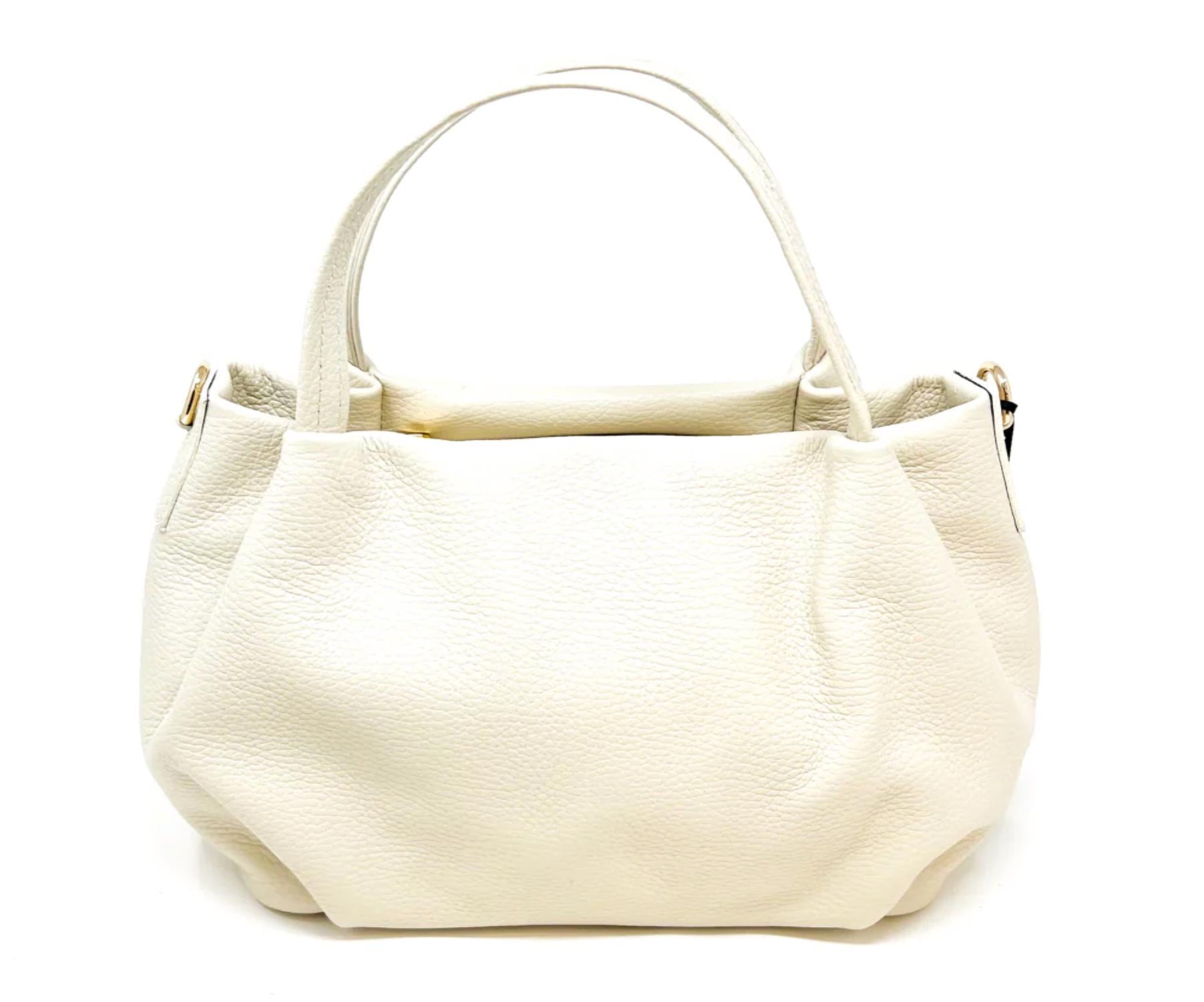 Discover the Women's Leather Bag by German Fuentes, a chic and functional addition to your accessory collection. This beige shoulder bag measures 7.5" x 9" x 5", providing ample space for essentials while maintaining a sleek profile. Crafted for style and practicality, pair it with an acrylic and chain purse strap for a personalized touch. Elevate your ensemble effortlessly with this versatile leather bag.