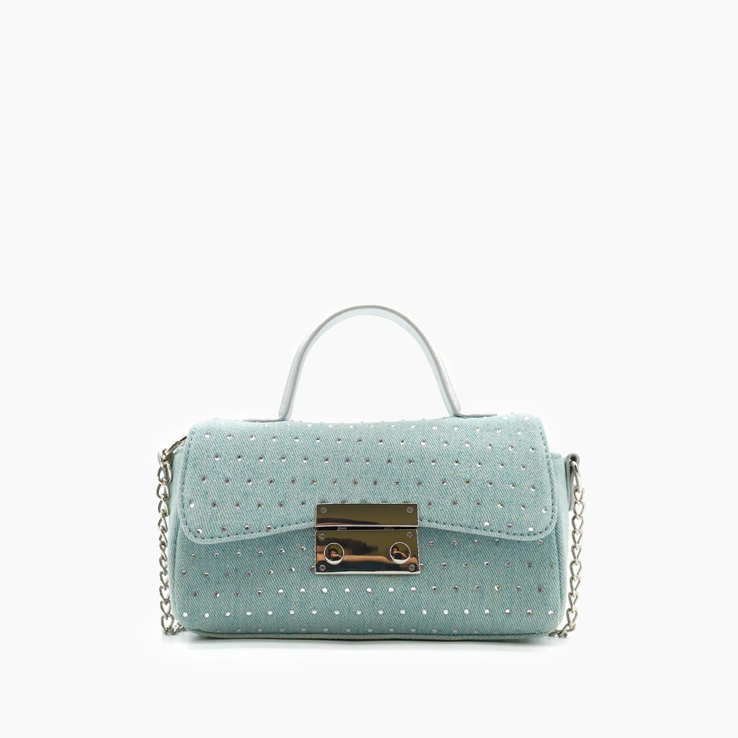 The crossbody bag is a trend that is here to stay and we especially love this style. Meet the Women's Beagle Studded Denim Crossbody Bag by Like Dreams, a chic accessory in blue that effortlessly combines style and function. Crafted from denim, this structured bag features studded detailing for a touch of charm. It measures 7.5 inches in width, 4 inches in height, and 2.125 inches in depth, weighing 10.6 oz. Closure: Snap closure. Equipped with a 27-inch chain link strap and a 2.5-inch ring top handle, it includes one main compartment to keep essentials secure.