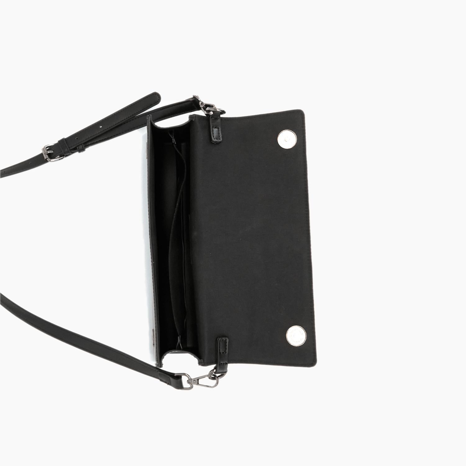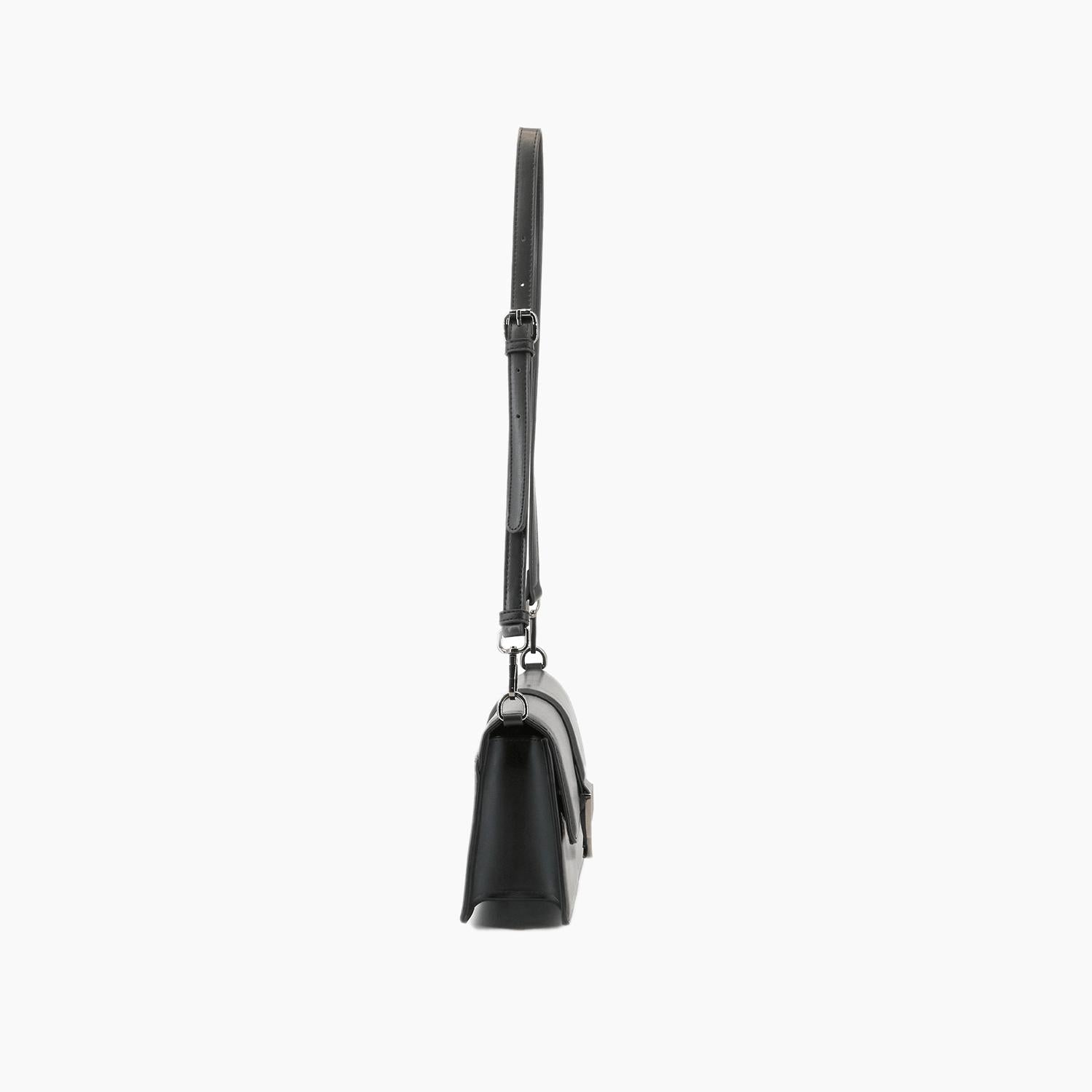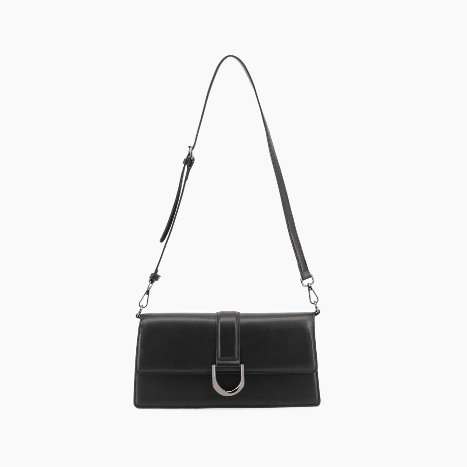 Elevate your style with the Like Dreams Women's Georgie East West Buckle Shoulder Bag in sleek black. This chic bag is crafted from luxurious vegan leather and features a 16" detachable, adjustable strap for versatile wear. It boasts two magnetic snap closures and a double inner compartment divider, finished with elegant silver hardware. The bag's dimensions are 11"W x 6"H x 3"D, making it a compact yet practical choice for any occasion.