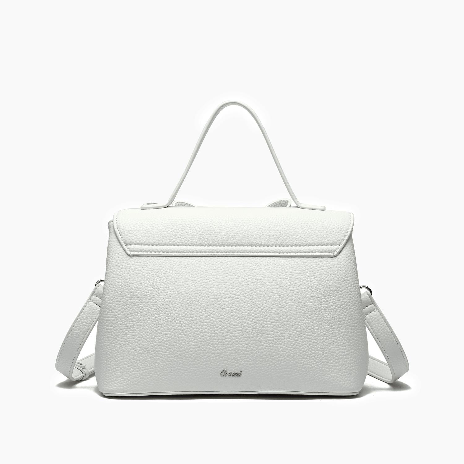 The crossbody bag is a trend that is here to stay and we especially love this style. Introducing the Women's Jasmine Bow Vegan Crossbody Bag by Like Dreams, a chic accessory in timeless white. Crafted from 100% vegan leather, this bag features a magnetic snap closure and is designed for versatility with a 23" adjustable and detachable strap and a 4" top handle. Its compact dimensions of 9 3/4"W x 7"H x 5"D make it ideal for both daytime outings and romantic dinner dates. Weighing just 19.97 oz, it balances style with functionality effortlessly.