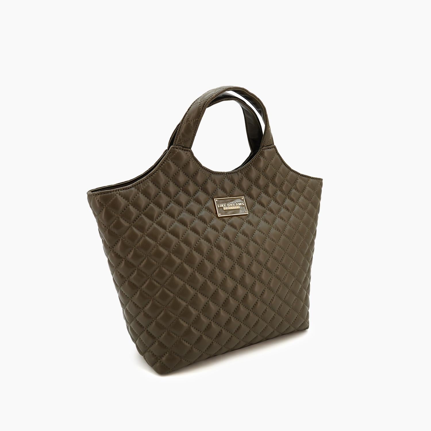 Aside from being the cutest bag ever, this tote is the perfect size to hold all of your vacation necessities. Pair this adorable bag with a flowing dress and some slides and you're all set! The Women's Juliet Vegan Quilted Tote Bag by Like Dreams is an elegant addition in olive, perfect for daily use with its chic design. Made from vegan leather, this tote offers a spacious interior with dimensions of 12"W x 11.5"H x 4.5"D, accommodating medium to large essentials. It features a zipper closure for security and includes a main compartment, an inner slit pocket, and an inner zipper pocket for organized storage. The versatility of this bag is enhanced with a 5" top handle and a 23.5" chain strap, allowing you to carry it as a top handle or wear it as a crossbody.