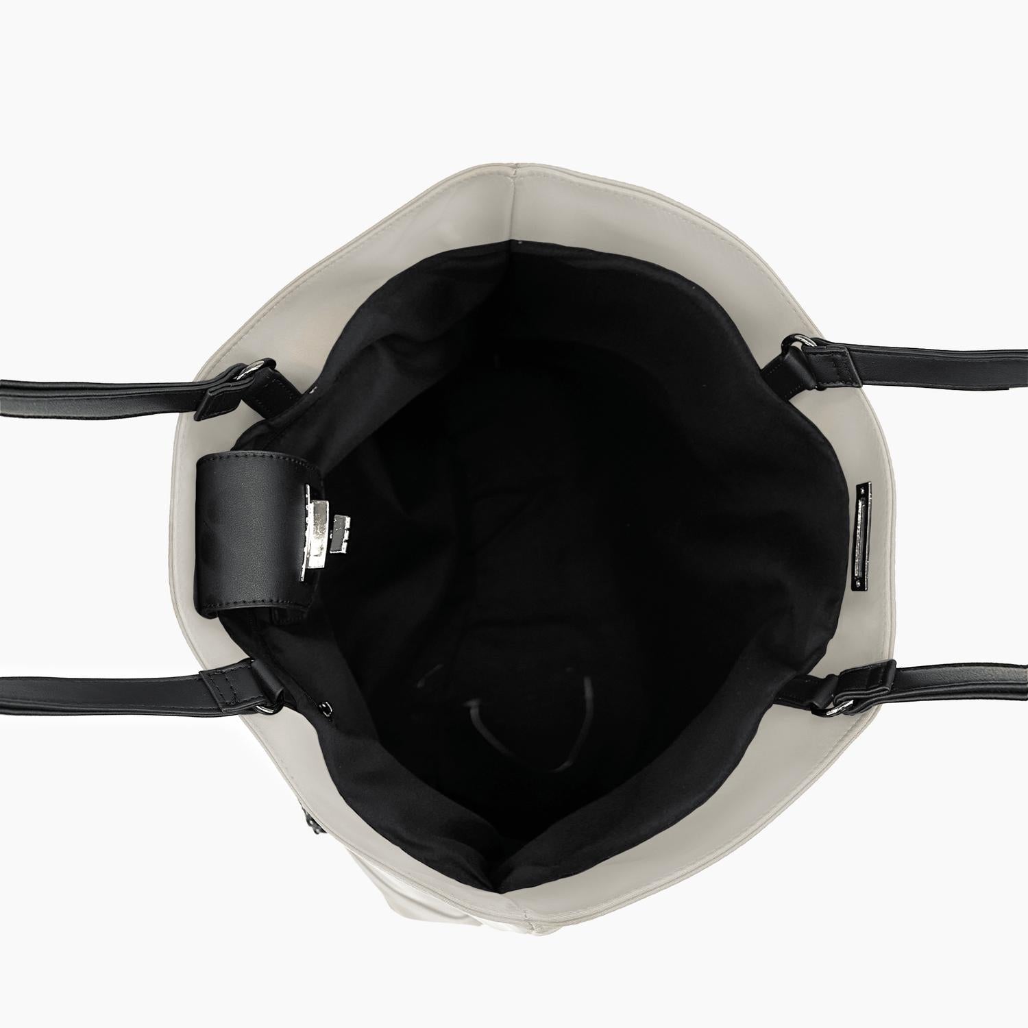 The carry-all tote bag of the season. Get in vacation mode with this perfectly sized tote bag that is the perfect accessory for beach days, pool parties, or sunset dinners. The Women's Maplewood Nylon Tote Bag by Like Dreams combines style with functionality, making it ideal for Fall and Winter. Crafted from lightweight nylon with a vegan leather bottom, this tote measures 15"W x 14"H x 5"D and features a 7" double strap top handle for easy carrying. Its turn lock closure ensures security while the 13" chain link adds a touch of elegance. Perfect for any occasion, this 28.8 oz ivory tote is a timeless accessory.