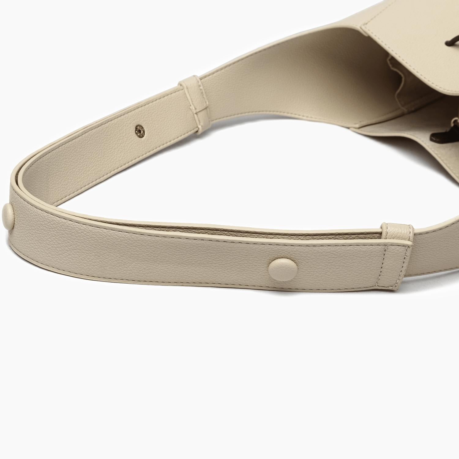 Experience the Women's Novelist Vegan Bucket Tote Bag by Like Dreams, a perfect blend of creativity and modern style in crisp white. Crafted from durable vegan leather with a soft vegan suede lining, this tote features an adjustable snap-button shoulder strap and convenient large internal zip pouch. Its dimensions are 10" W x 12" H x 8" D, weighing 17 oz, making it an ideal choice for carrying your essentials. The tote's golden metal clip closure adds a touch of elegance.