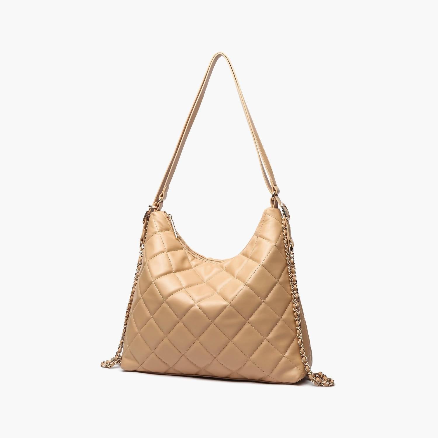 Introducing the Women's Quilted Vegan Leather Convertible Shoulder Bag by Like Dreams, an embodiment of versatility in chic camel. This convertible piece, crafted from luxurious vegan leather, seamlessly transitions from a tote to a backpack to a purse, all while keeping your essentials organized with its inner zip pocket and outer zip closure. The bag's dimensions of 13" width, 10.5" height, and 4" depth make it an ideal companion for both everyday errands and special occasions. Perfectly finished with adjustable chain-detailed straps, this stylish accessory is a must-have in any fashion-forward wardrobe.