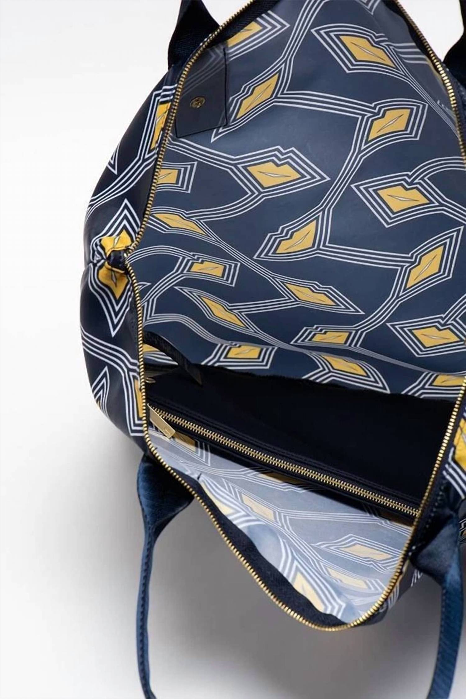 Introducing the TED BAKER Women's Parnaa Tote Bag in a sophisticated navy hue, perfect for your everyday essentials. This tote features a practical top zip closure and a convenient foldable design, ideal for on-the-go versatility. Crafted from durable 100% polyester, it ensures longevity and style in one package.