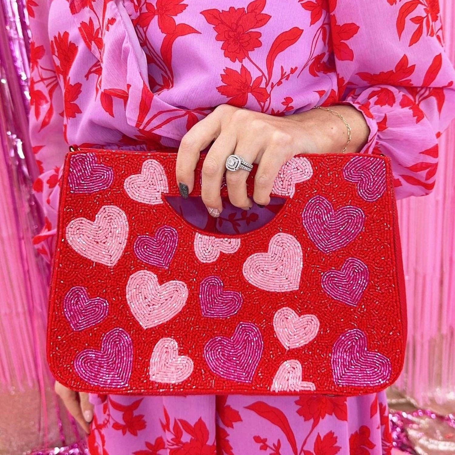 Don't be mistaken by its size, this little bag holds more than you'd expect! Introducing the Love Me Clutch Bag by Treasure Jewels, a stunning embodiment of Colombian artistry in a striking red hue. This clutch is meticulously crafted with beaded embellishments arranged in an enchanting heart pattern, offering a glimpse into the vibrant culture of South America. Each bag is a testament to the skill and tradition of talented Colombian artisans. Perfect for carrying essentials, this piece is as much a style statement as it is a cultural icon.