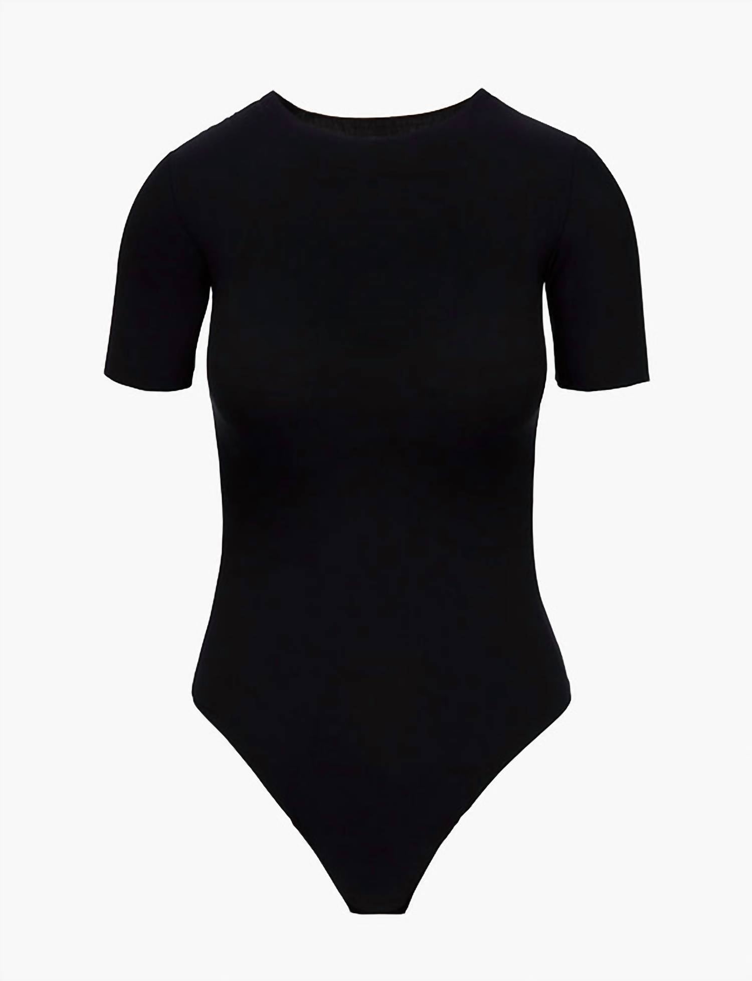 Embrace effortless elegance with the Commando Butter Short Sleeve Crewneck Bodysuit in classic black, crafted with luxury in mind. This women’s bodysuit features short sleeves and a crew neckline, designed from an ultra-soft, high-gauge Austrian modal blend for superior comfort and breathability. Composition includes 79% Modal and 21% Spandex, offering a four-way stretch with high recovery and a pilling-resistant finish. Closure: Snap closure at the bottom ensures a sleek fit, while raw-cut edges maintain a polished silhouette. Care: Machine washable and line dry. Sustainably made with certified eco-friendly fabric.
