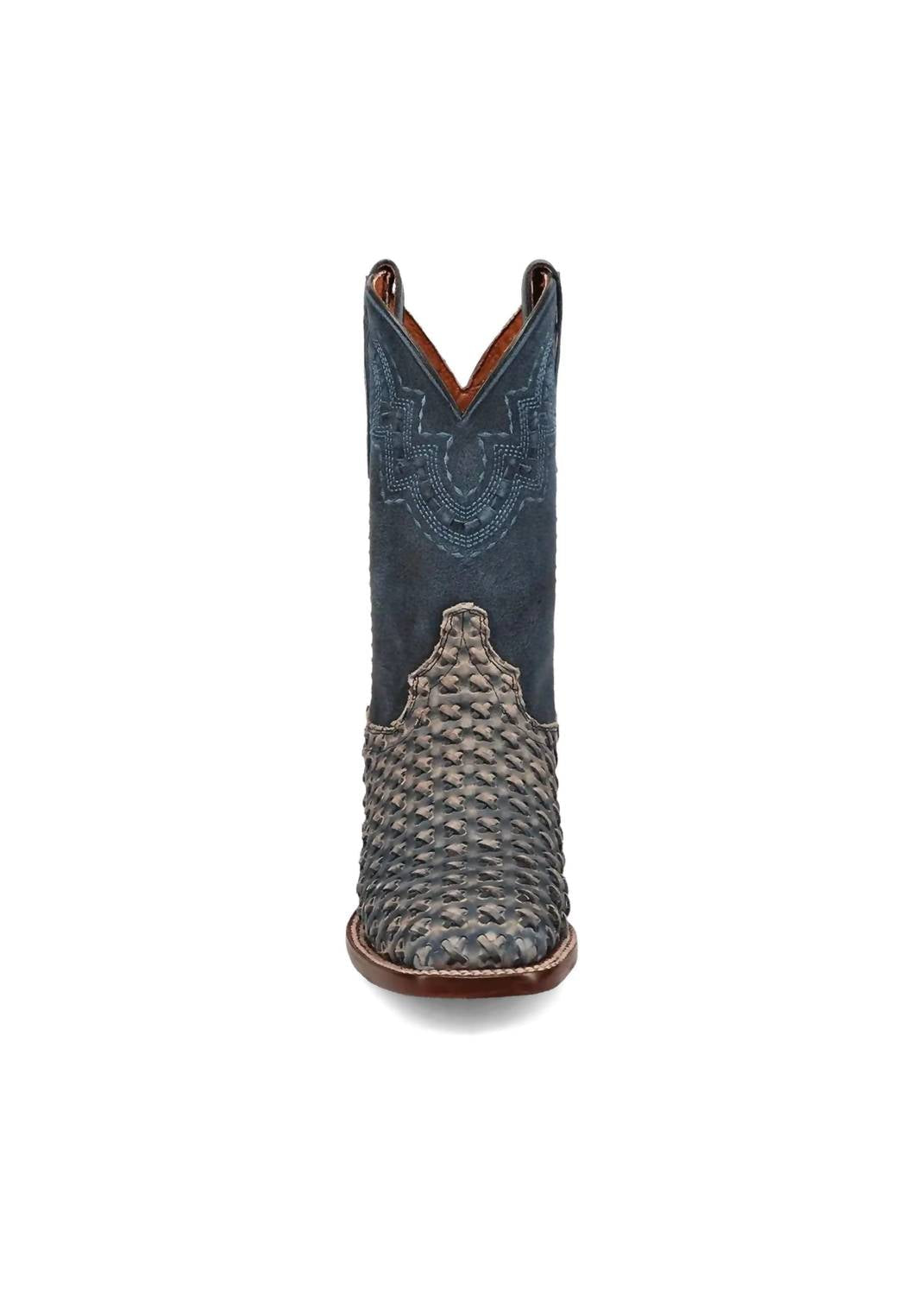 Say hello to the perfect, most versatile boot. The ankle height makes this style easily transition from day to night. Wear them with your favorite skinny jeans and tee for a more laid back look, or pair them with your favorite mini dress and jacket for a night out on the town. Meet the Dan Post Women's Indy Weave Cowgirl Certified Boot, a blue leather masterpiece that melds traditional and modern aesthetics. Designed with an 11-inch shaft, a 12-inch circumference, and a 1-inch stockman heel, it features a squared toe and medium width for optimal fit. Complete with a leather lining and outsole, and equipped with a removable antibacterial and antifungal Soft Strike Orthotic, it ensures comfort and hygiene. Perfect for the stylish and discerning cowgirl.