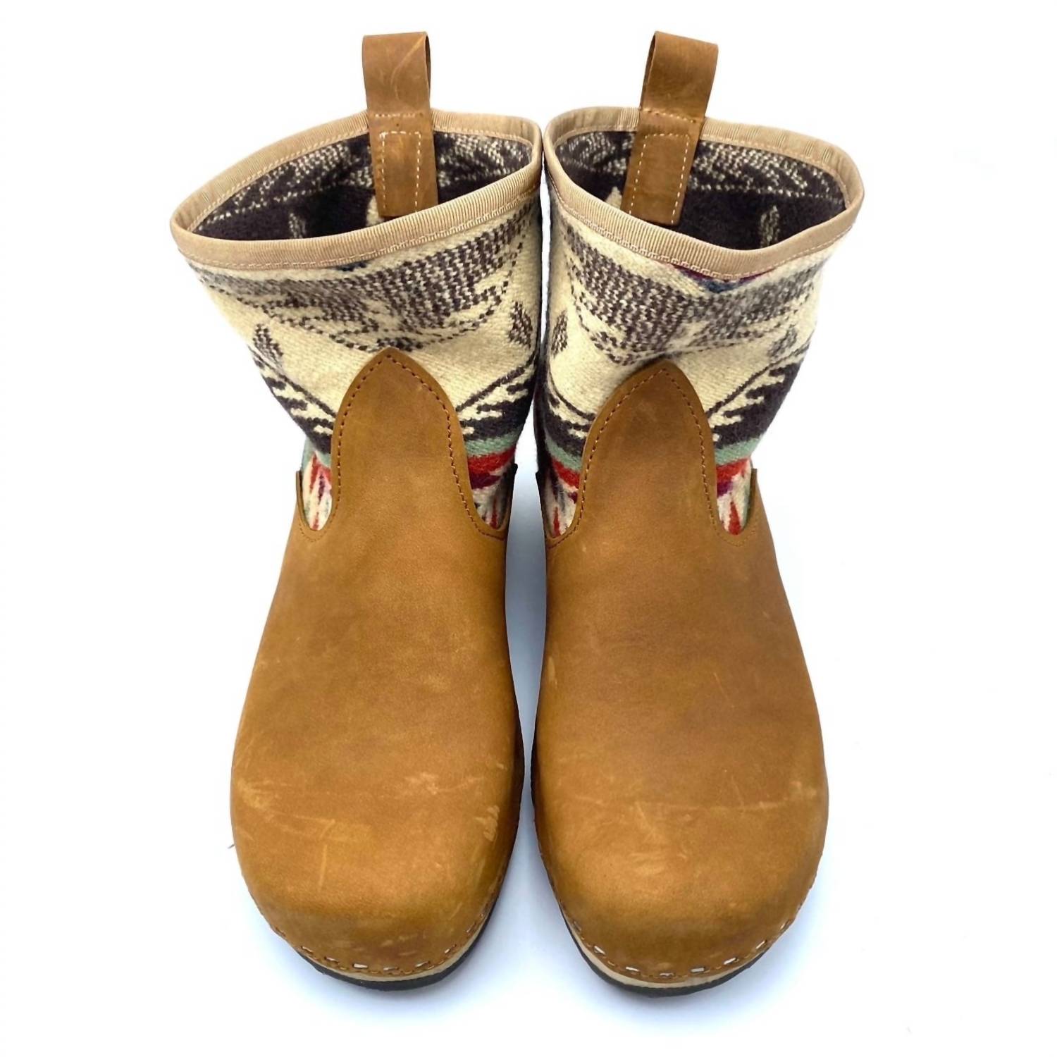 Crafted for style and comfort. Boast a high shaft and a slip-in design, complemented by a round toe and classic clog-like block heel. Made from premium Aspen wood material, sourced from Austria. Lightweight and water-resistant. Enjoy the quiet comfort of the natural rubber outer sole, setting these clogs apart from traditional designs, ideal for winter streetwear and travel.