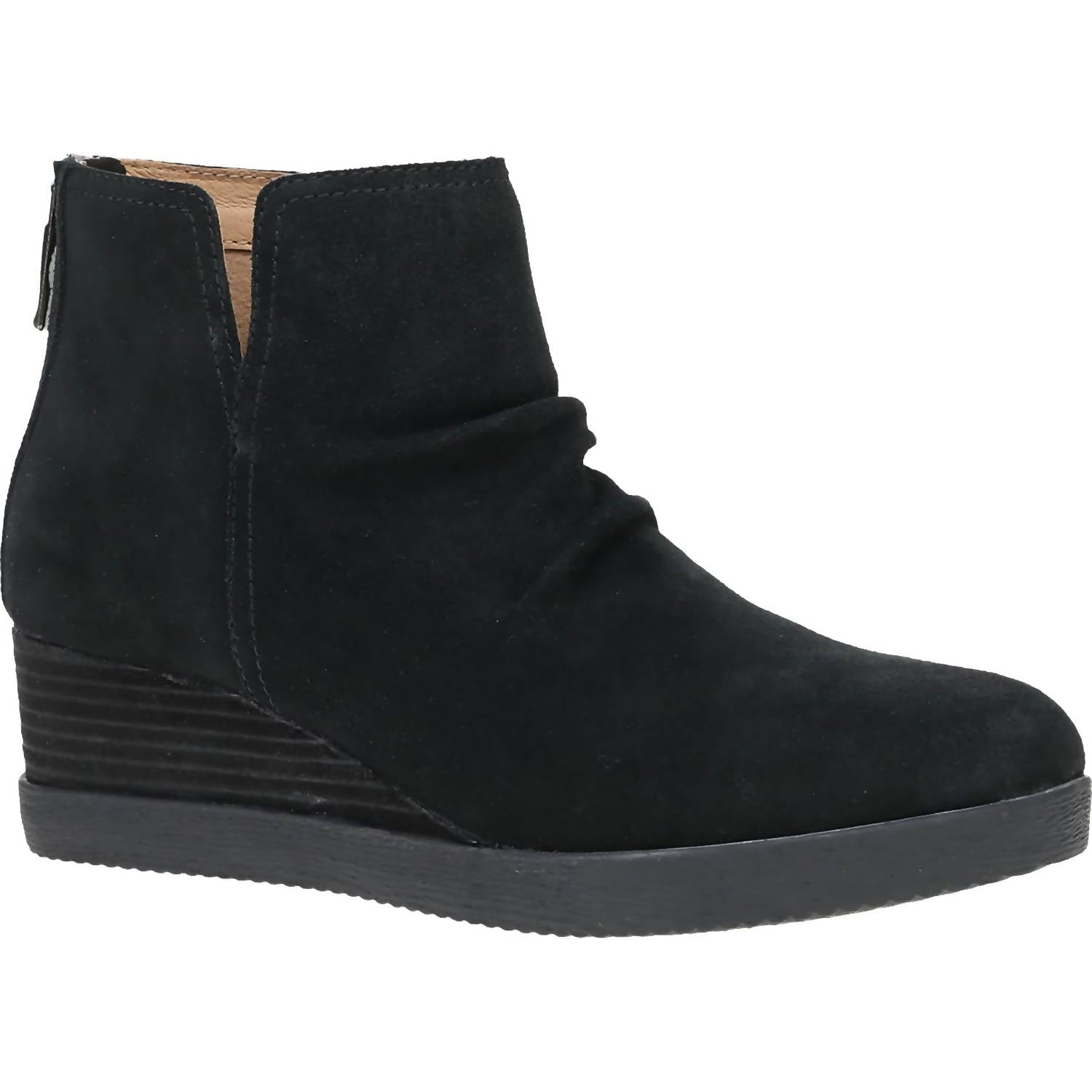 Say hello to the perfect, most versatile boot. The ankle height makes this style easily transition from day to night. Wear them with your favorite skinny jeans and tee for a more laid back look, or pair them with your favorite mini dress and jacket for a night out on the town. Dansko presents the Women's Stephanie Waterproof Suede Bootie, a chic footwear option perfect for a dinner party with its Y2K trend elements. Featuring a mid-height 2-inch wedge heel, these black ankle booties are designed with durable, waterproof suede, enhanced by 3M Scotchgard™ to resist stains. The back zipper offers easy wear, while the combination fabric and leather lining ensure breathability. Care for your feet with the removable PU footbed, complemented by memory foam and Dansko Natural Arch® technology for ultimate comfort and support.