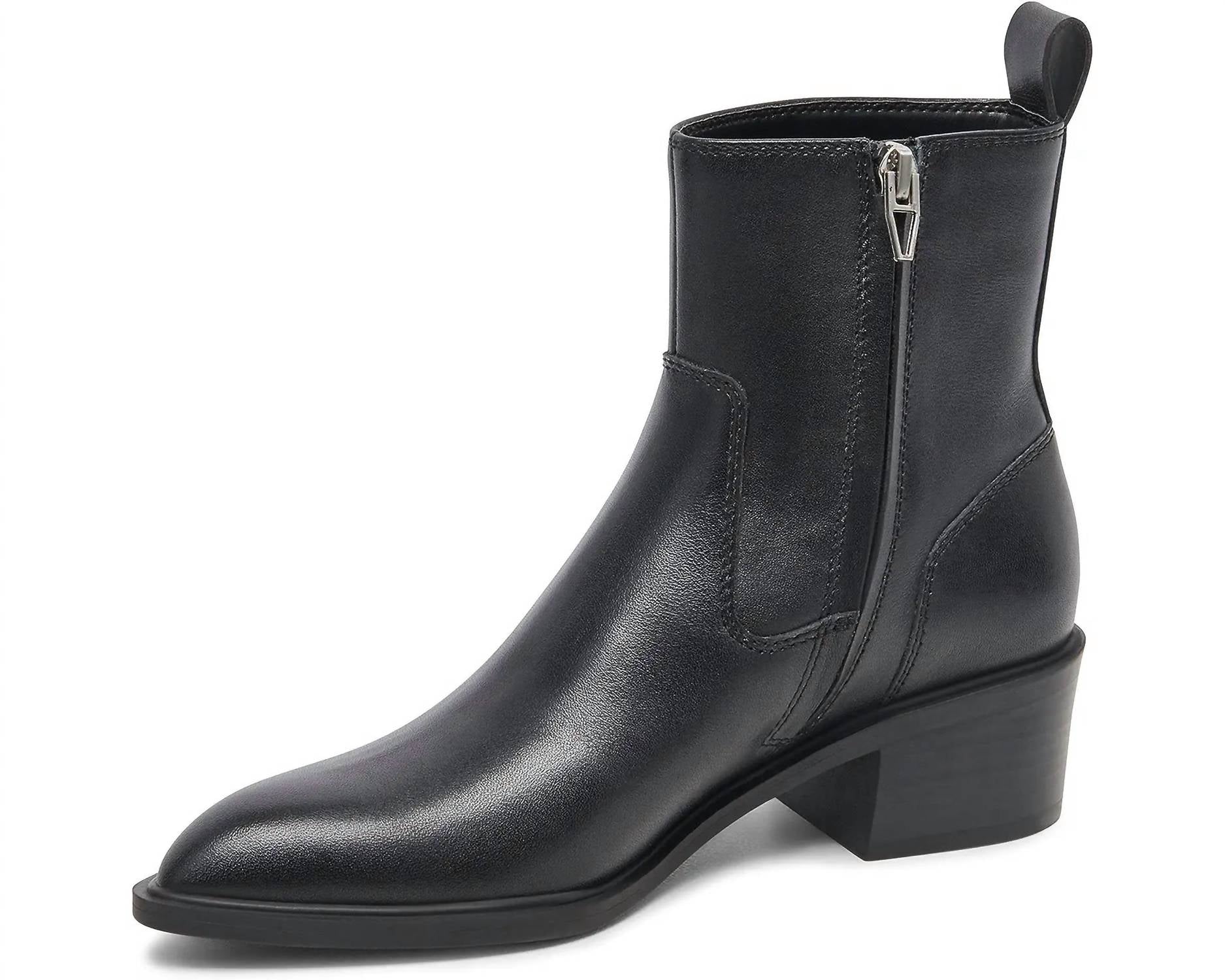 Say hello to the perfect, most versatile boot. The ankle height makes this style easily transition from day to night. Wear them with your favorite skinny jeans and tee for a more laid back look, or pair them with your favorite mini dress and jacket for a night out on the town. Padded footbed. Pointed toe design. Leather midsole. Man-made outsole. Measurements: Heel Height: 1 4⁄5 in, Circumference: 11 in, Shaft: 5 in. Imported.