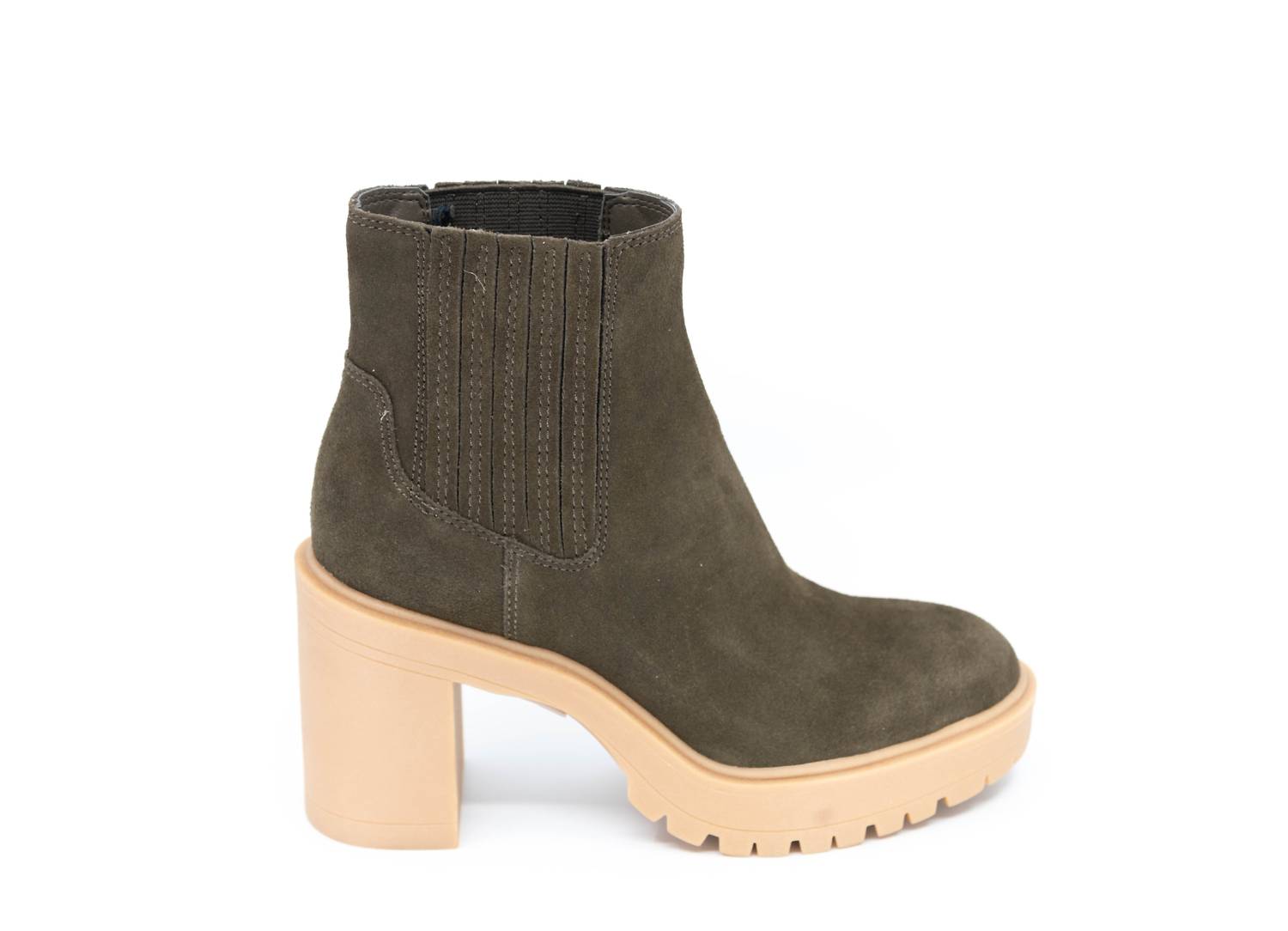 Say hello to the perfect, most versatile boot. The ankle height makes this style easily transition from day to night. Wear them with your favorite skinny jeans and tee for a more laid back look, or pair them with your favorite mini dress and jacket for a night out on the town. Waterproof suede upper. Slip on with stretch elastic. Round toe. Textile lining. Padded insole. Rubber lug sole. Imported. Heel height: 3.75". Platform height: 1".