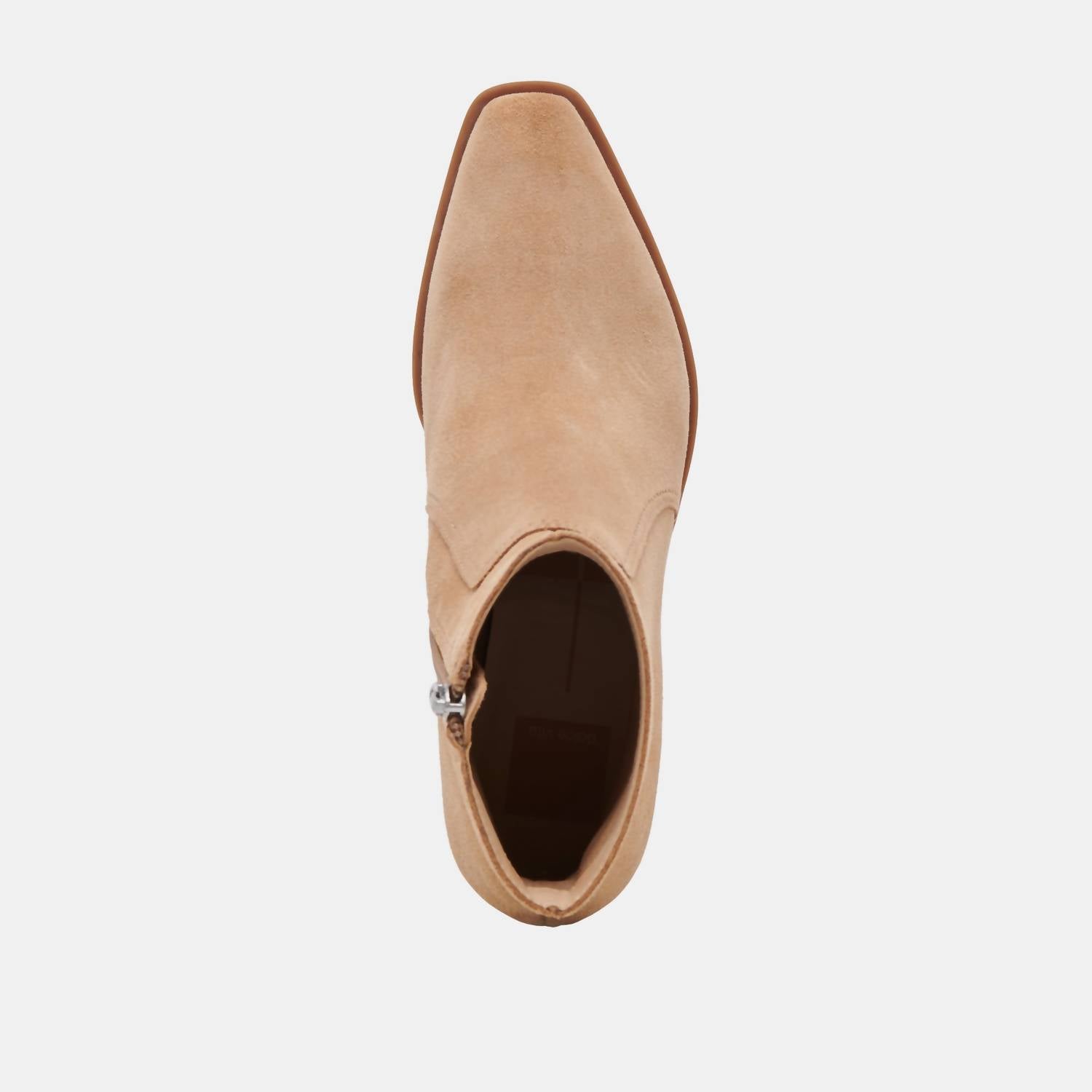 Say hello to the perfect, most versatile boot. The ankle height makes this style easily transition from day to night. Wear them with your favorite skinny jeans and tee for a more laid back look, or pair them with your favorite mini dress and jacket for a night out on the town. Introducing the Women's Fahari H20 Booties by Dolce Vita, an elegant and practical choice for any wardrobe. These ankle boots are crafted from camel leather, featuring a chic squared toe design. The short stacked block heel measures 1.6 inches, adding comfort for everyday wear. The zipper closure ensures easy removal, and the water-resistant H2O label offers durability in wet conditions.