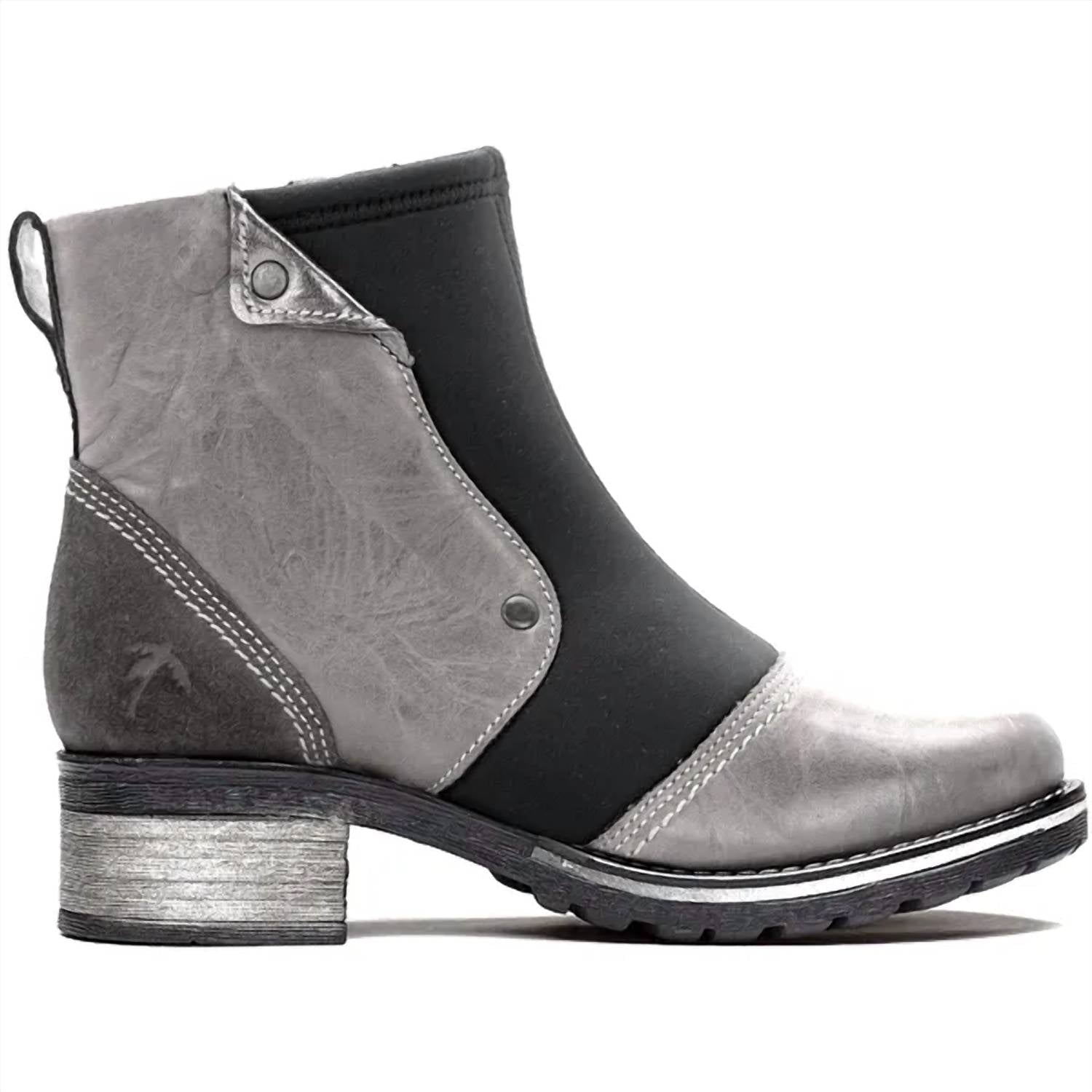 Say hello to the perfect, most versatile boot. The ankle height makes this style easily transition from day to night. Wear them with your favorite skinny jeans and tee for a more laid back look, or pair them with your favorite mini dress and jacket for a night out on the town. Upgrade your boot collection with the DROMEDARIS Women's Kassia Boot in Slate, featuring an inside zipper for easy entry and a top line elastic for superior ankle movement. Crafted from soft waxy leather with a creased, brushed finish and complemented by metallic trims and detailed stitching, this boot is both stylish and functional. The instep substituting Neoprene material adds elasticity for high insteps, while the faux fur lining ensures warmth and comfort. With a removable "4D Technology" footbed developed in Germany and a low block heel, these boots provide support and comfort all day long. Perfect for women standing on their feet all day.