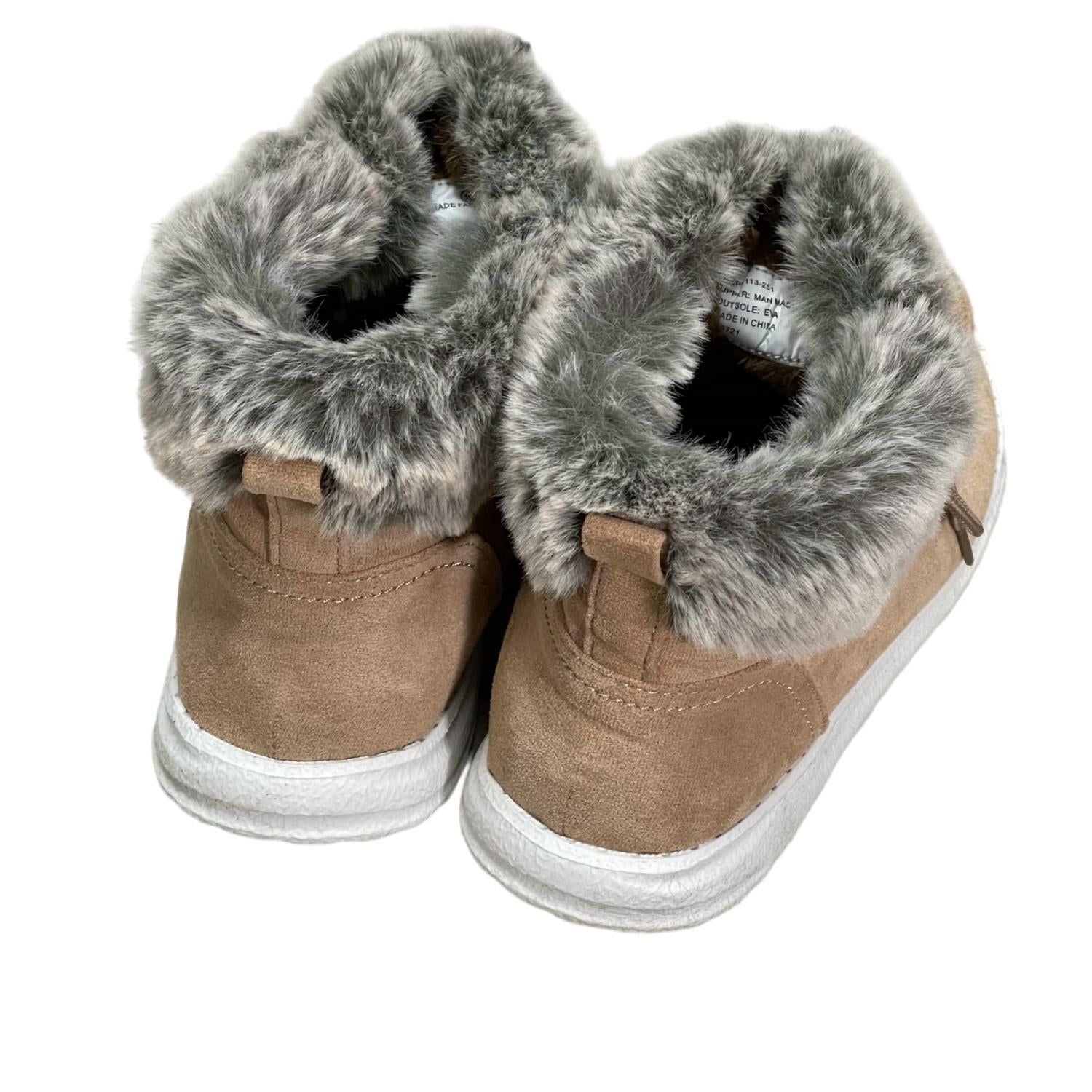 Say hello to the perfect, most versatile boot. The ankle height makes this style easily transition from day to night. Wear them with your favorite skinny jeans and tee for a more laid back look, or pair them with your favorite mini dress and jacket for a night out on the town.This bootie is true to size and offers a snap down or flip up feature. It’s fuzzy fleece lined, slip-on style, with tie shoes and a padded insole. Made from lightweight suede canvas with a soft foam insole for added comfort.