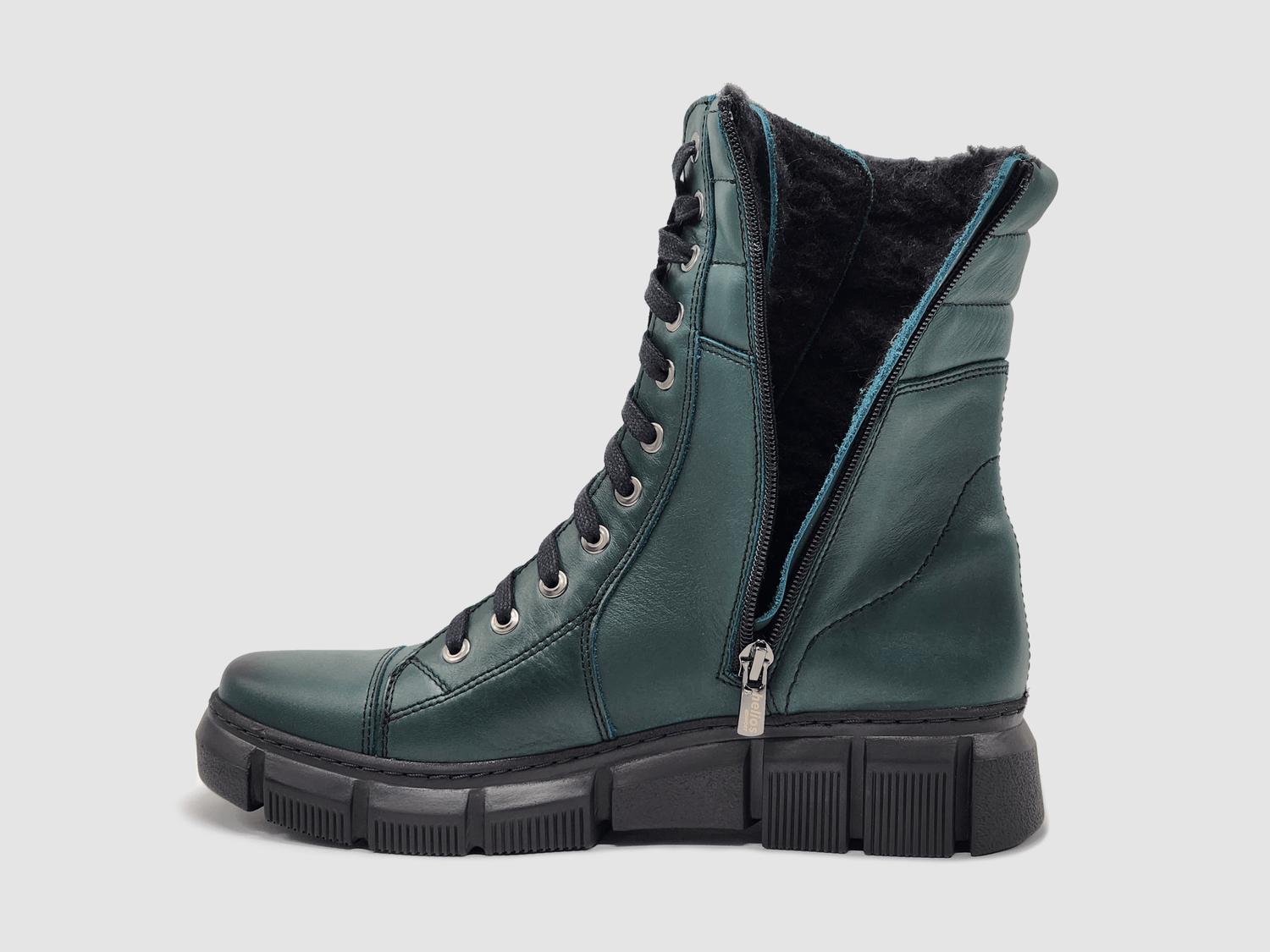 Say hello to the perfect, most versatile boot. The ankle height makes this style easily transition from day to night. Wear them with your favorite skinny jeans and tee for a more laid back look, or pair them with your favorite mini dress and jacket for a night out on the town. Step into winter with confidence in the Women's Medusa Fur-lined Leather Boots by Helios, a stylish choice in a trendy green hue. These boots feature a luxurious soft wool lining and a tall design for ultimate warmth and comfort. Crafted from high-quality leather, they are both durable and fashionable. Ideal for any cold-weather wardrobe, these boots ensure you stay cozy and chic all season.