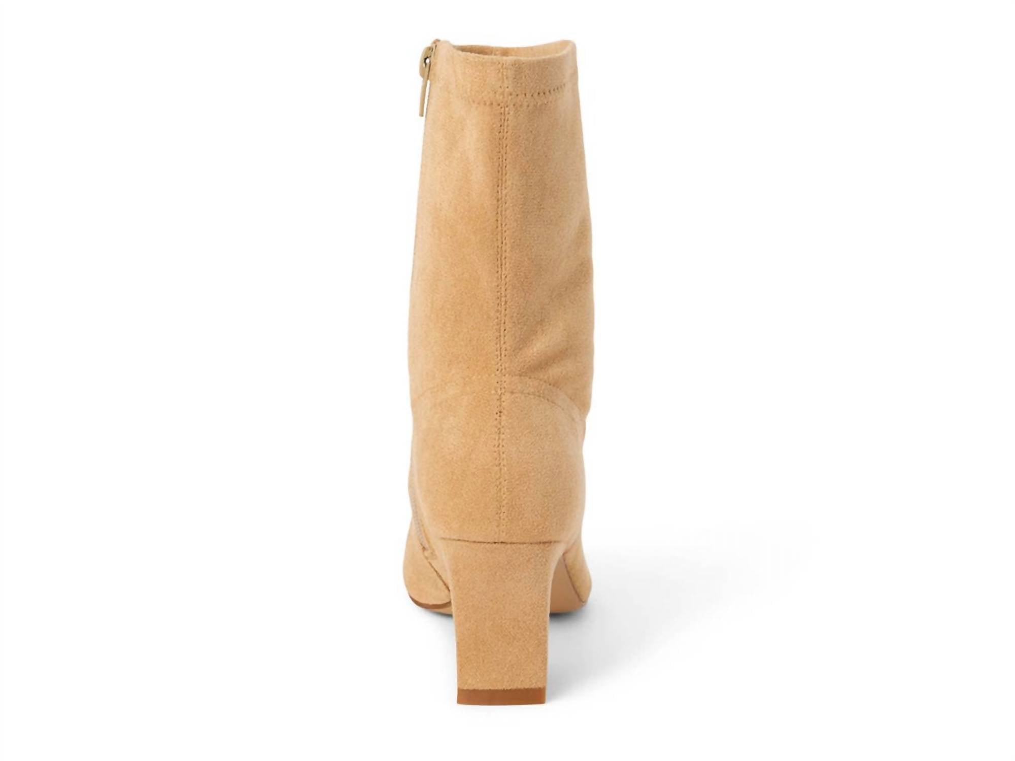 Elevate your boot collection with the Women's Loren Sleek Bootie by Matisse, exuding quiet luxury. These ankle boots feature a fabric upper and a chic square toe, paired with a comfortable padded footbed for all-day wear. The sophisticated design includes an inside zipper closure, a synthetic lining, and a synthetic sole, resting on a graceful 2.5" block heel. With an approximate 8.5" shaft height and 11" leg opening, these imported booties in beige are perfect for fall concert occasions.