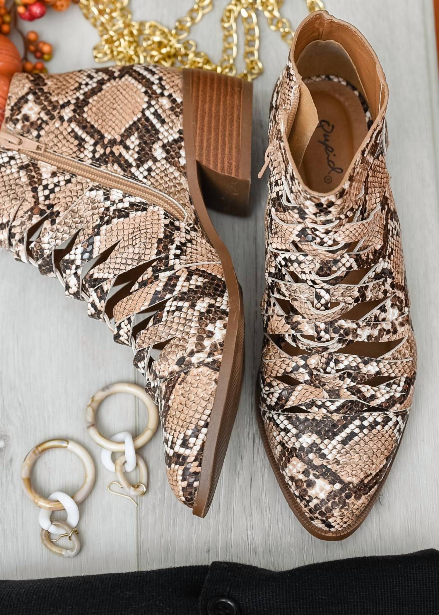 Say hello to the perfect, most versatile boot. The ankle height makes this style easily transition from day to night. Wear them with your favorite skinny jeans and tee for a more laid back look, or pair them with your favorite mini dress and jacket for a night out on the town.Sleek silhouette and slightly pointed toe. Woven design and cutout. Zipper closure. Braided woven detail. Faux Leather. 1" heel height.